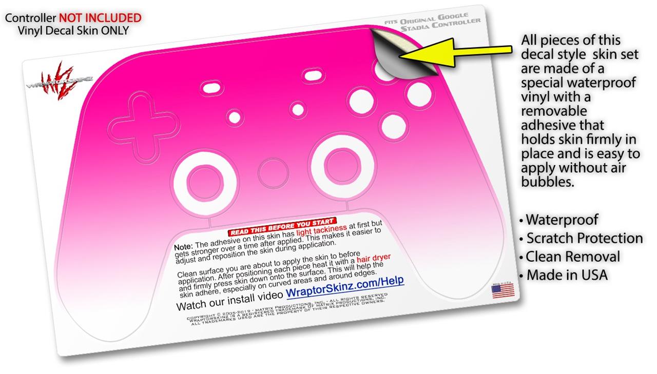Skin Decal Wrap works with Original Google Stadia Controller Smooth Fades White Hot Pink Skin Only CONTROLLER NOT INCLUDED