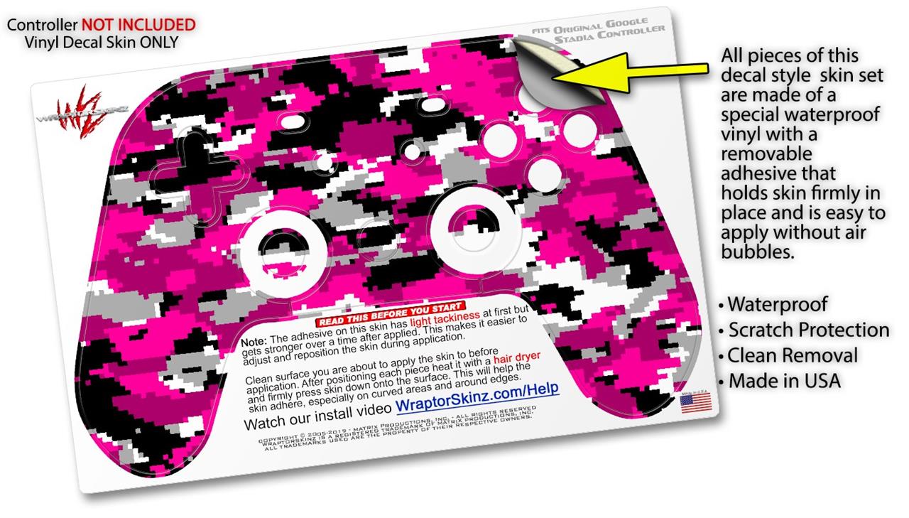 Skin Decal Wrap works with Original Google Stadia Controller WraptorCamo Digital Camo Hot Pink Skin Only CONTROLLER NOT INCLUDED