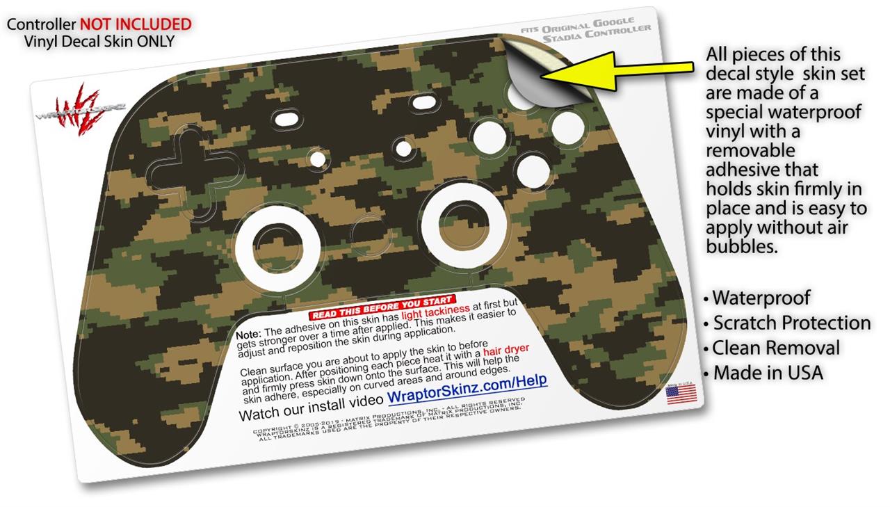 Skin Decal Wrap works with Original Google Stadia Controller WraptorCamo Digital Camo Timber Skin Only CONTROLLER NOT INCLUDED