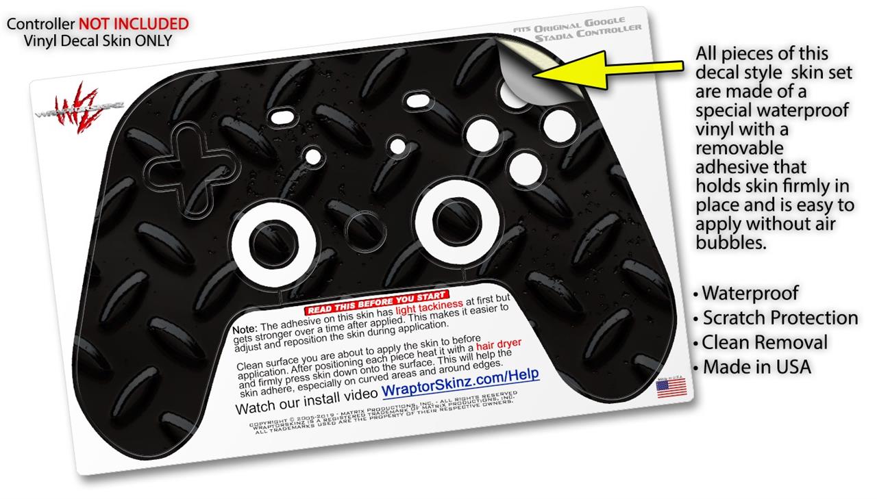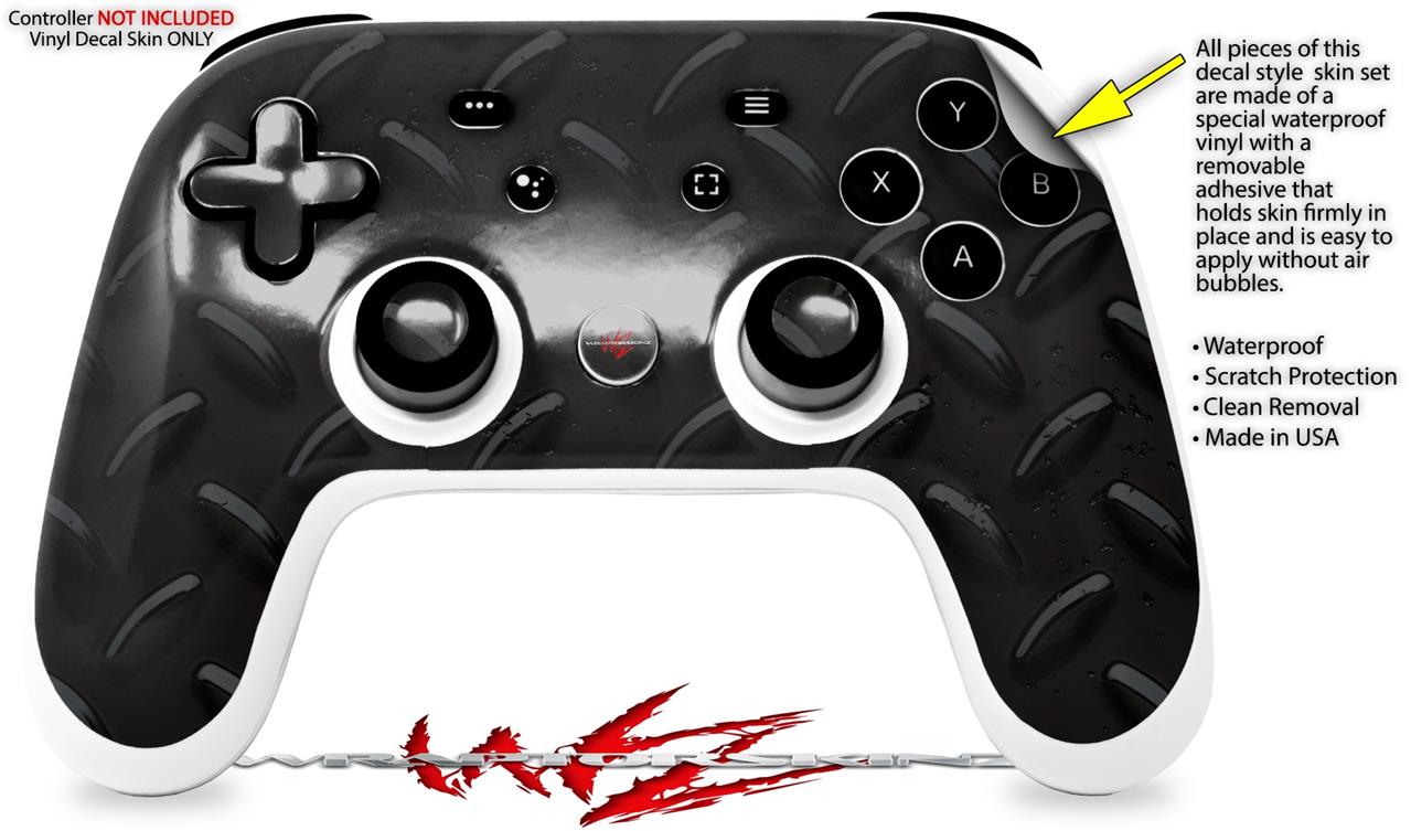 Skin Decal Wrap works with Original Google Stadia Controller Diamond Plate Metal 02 Black Skin Only CONTROLLER NOT INCLUDED