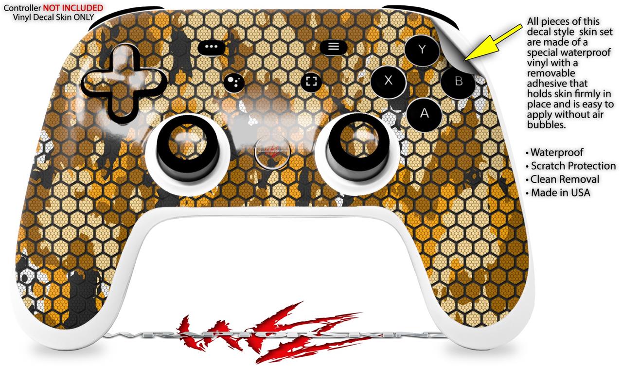 Skin Decal Wrap works with Original Google Stadia Controller HEX Mesh Camo 01 Orange Skin Only CONTROLLER NOT INCLUDED