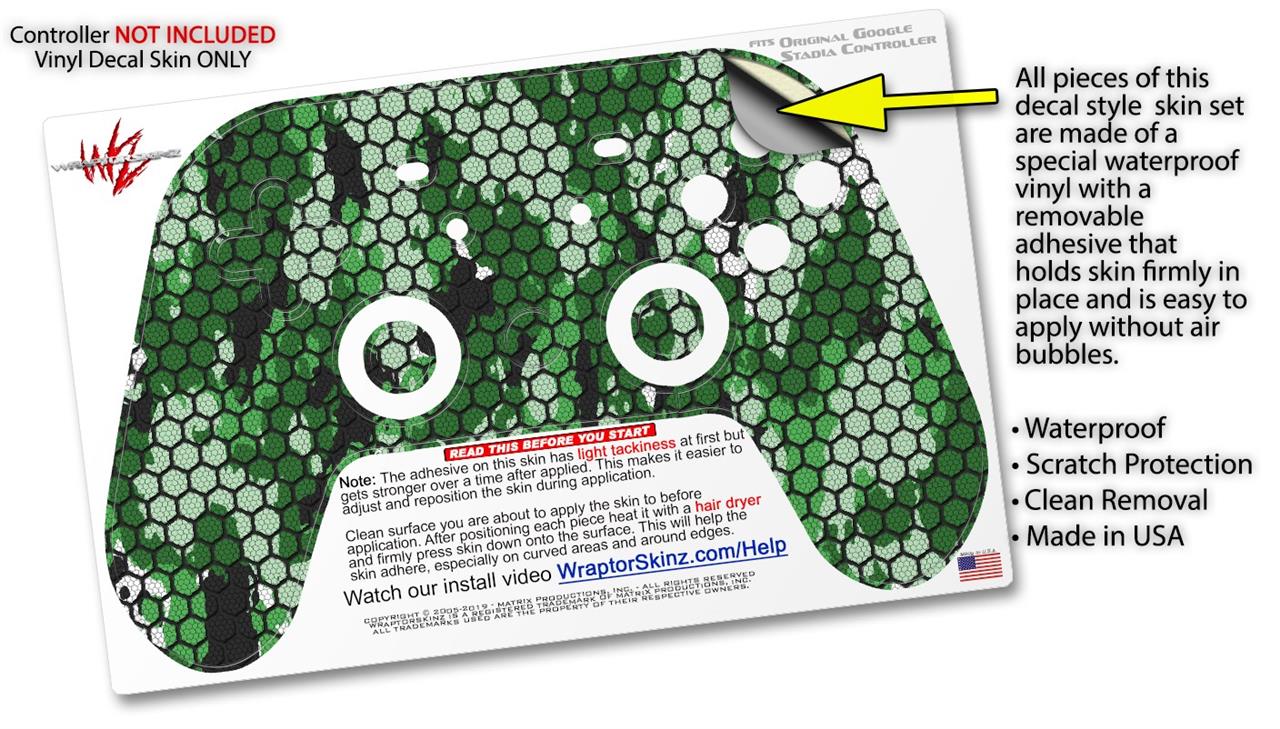 Skin Decal Wrap works with Original Google Stadia Controller HEX Mesh Camo 01 Green Skin Only CONTROLLER NOT INCLUDED