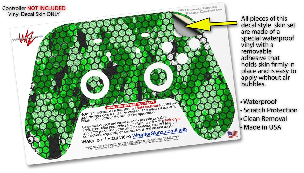 Skin Decal Wrap works with Original Google Stadia Controller HEX Mesh Camo 01 Green Bright Skin Only CONTROLLER NOT INCLUDED