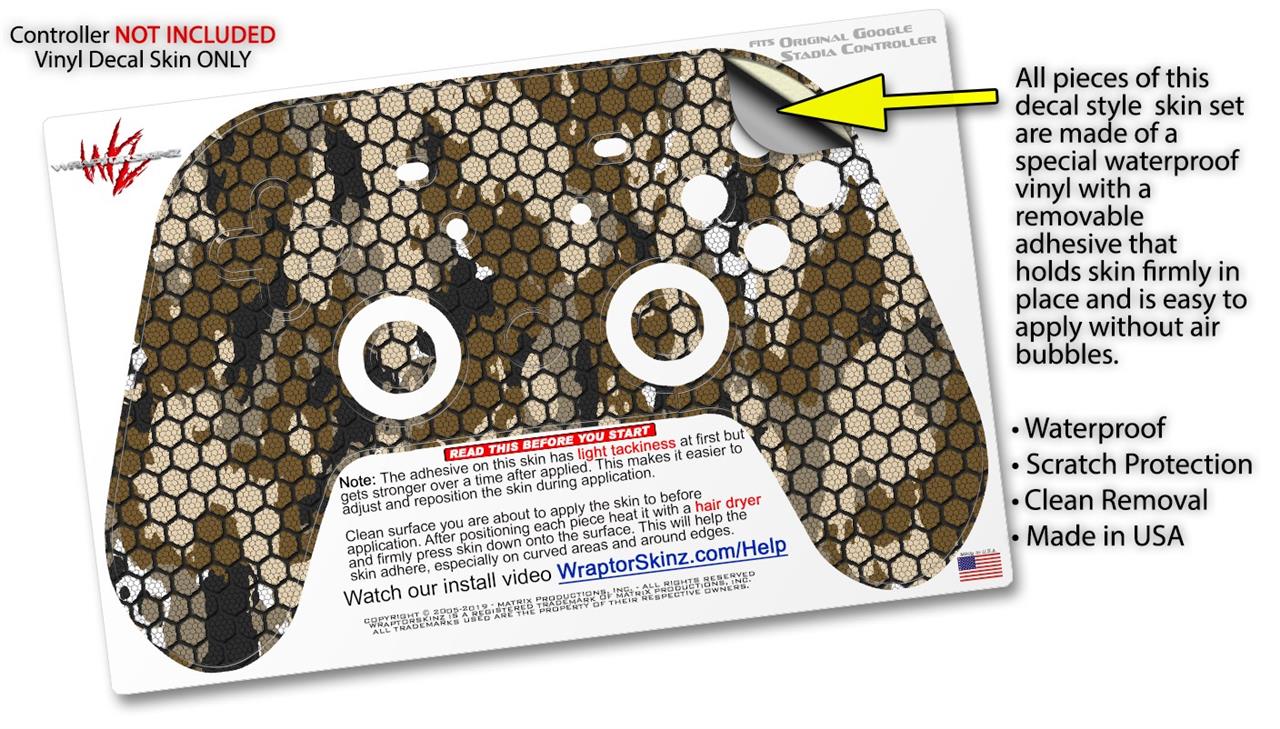 Skin Decal Wrap works with Original Google Stadia Controller HEX Mesh Camo 01 Brown Skin Only CONTROLLER NOT INCLUDED