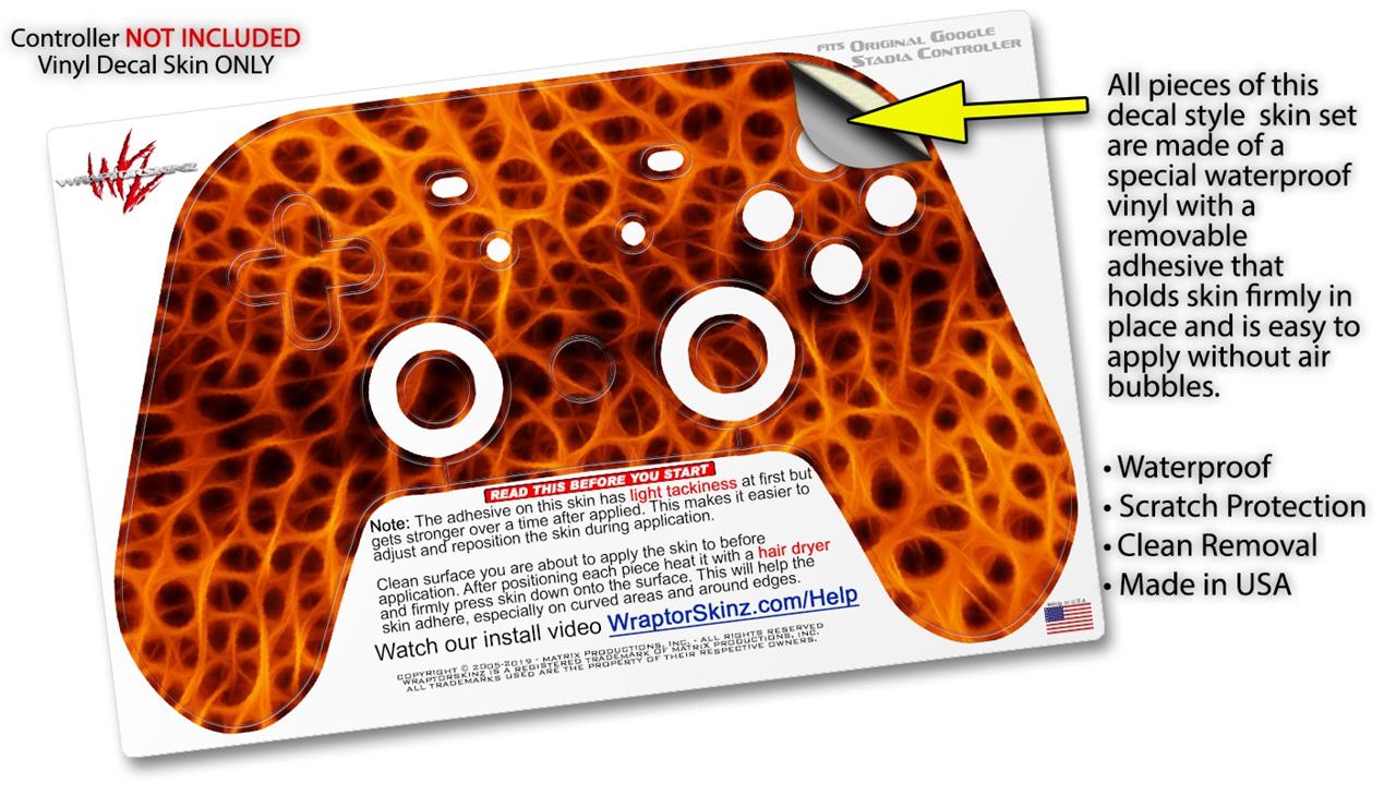 This product is in no way affiliated with or endorsed by Google. WraptorSkinz® skin wraps work with the Original Google Stadia version 1 Controller. Printed using superb photo quality designs and vibrant colors printed with special fade resistant inks that last even in direct sun for years. WraptorSkinz are a composite of two layers of commercial grade materials. The bottom layer is a soft, flexible vinyl with a special removable adhesive that is easily positioned, applied without air bubbles. Next, we print the bottom layer with UV protected, fade resistant inks that deliver superb photo quality designs in vibrant colors. Finally, we bond a professional grade laminate over the entire skin adding a glossy protective finish.