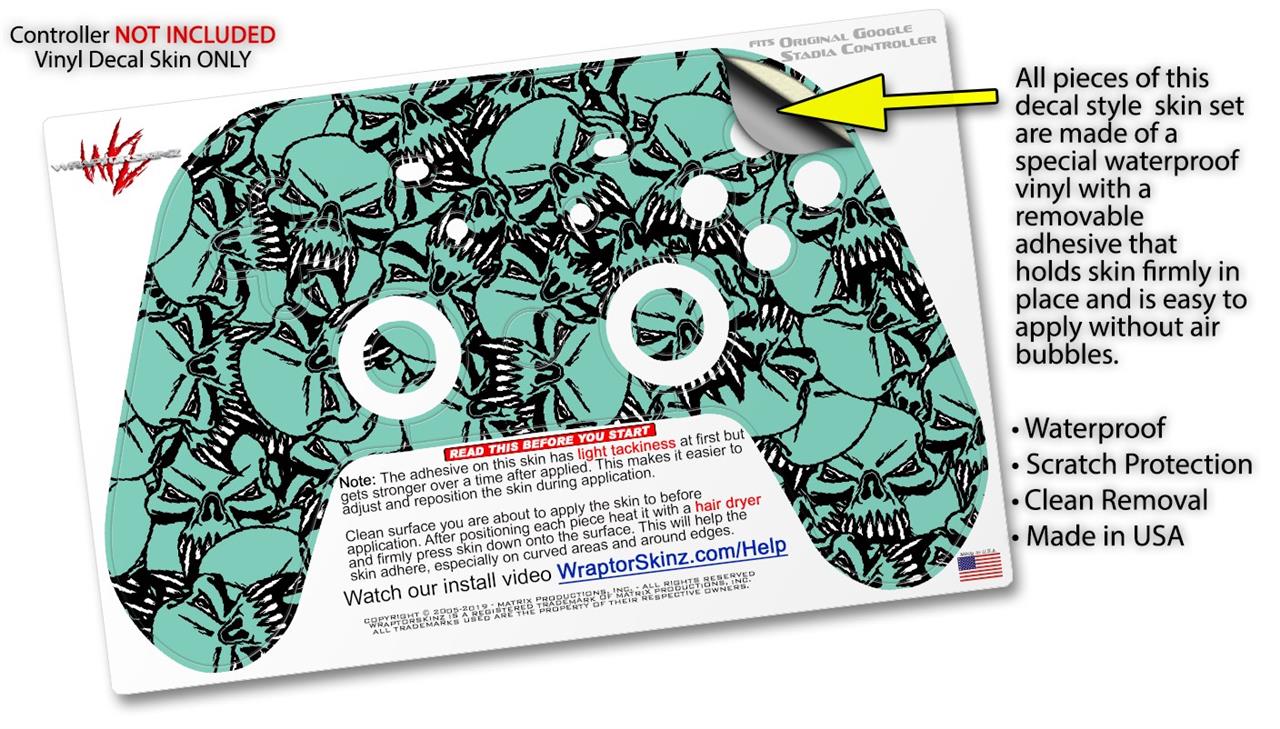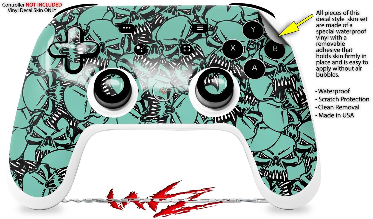 Skin Decal Wrap works with Original Google Stadia Controller Scattered Skulls Seafoam Green Skin Only CONTROLLER NOT INCLUDED