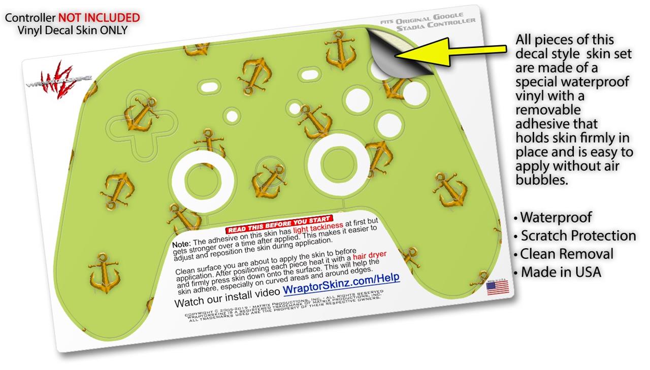 Skin Decal Wrap works with Original Google Stadia Controller Anchors Away Sage Green Skin Only CONTROLLER NOT INCLUDED
