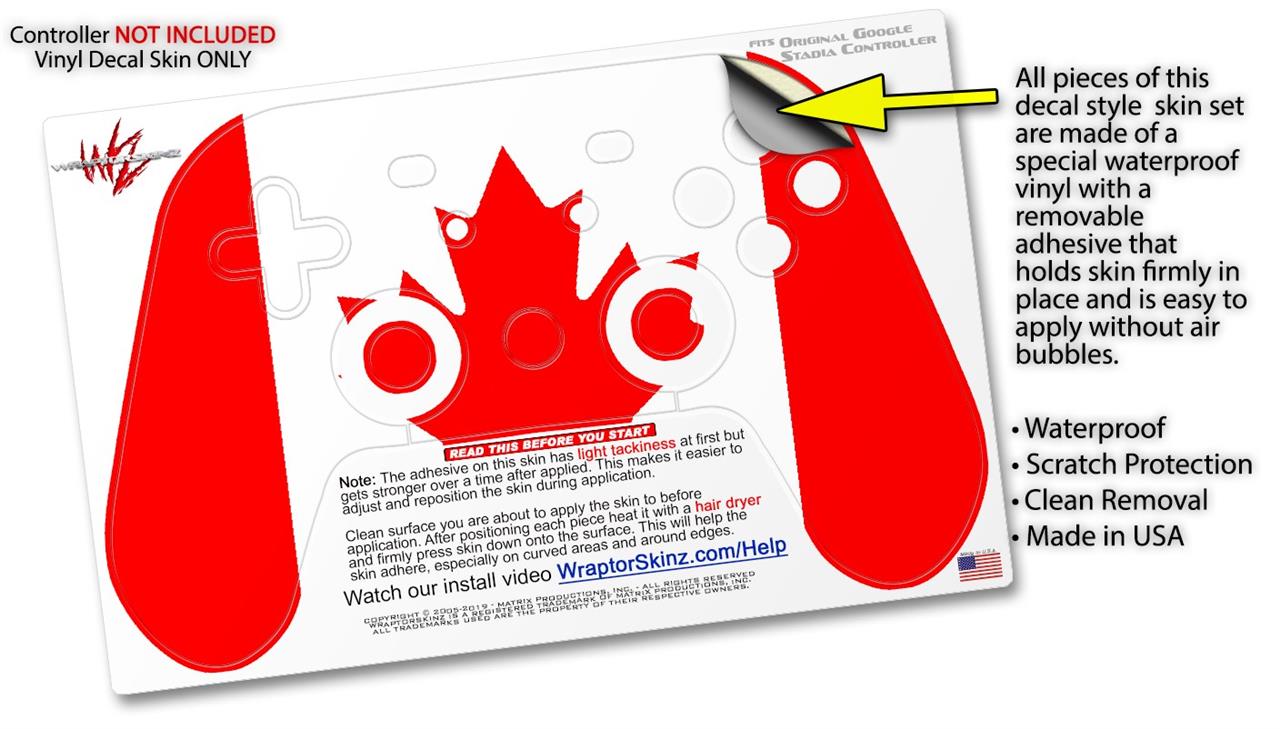 Skin Decal Wrap works with Original Google Stadia Controller Canadian Canada Flag Skin Only CONTROLLER NOT INCLUDED