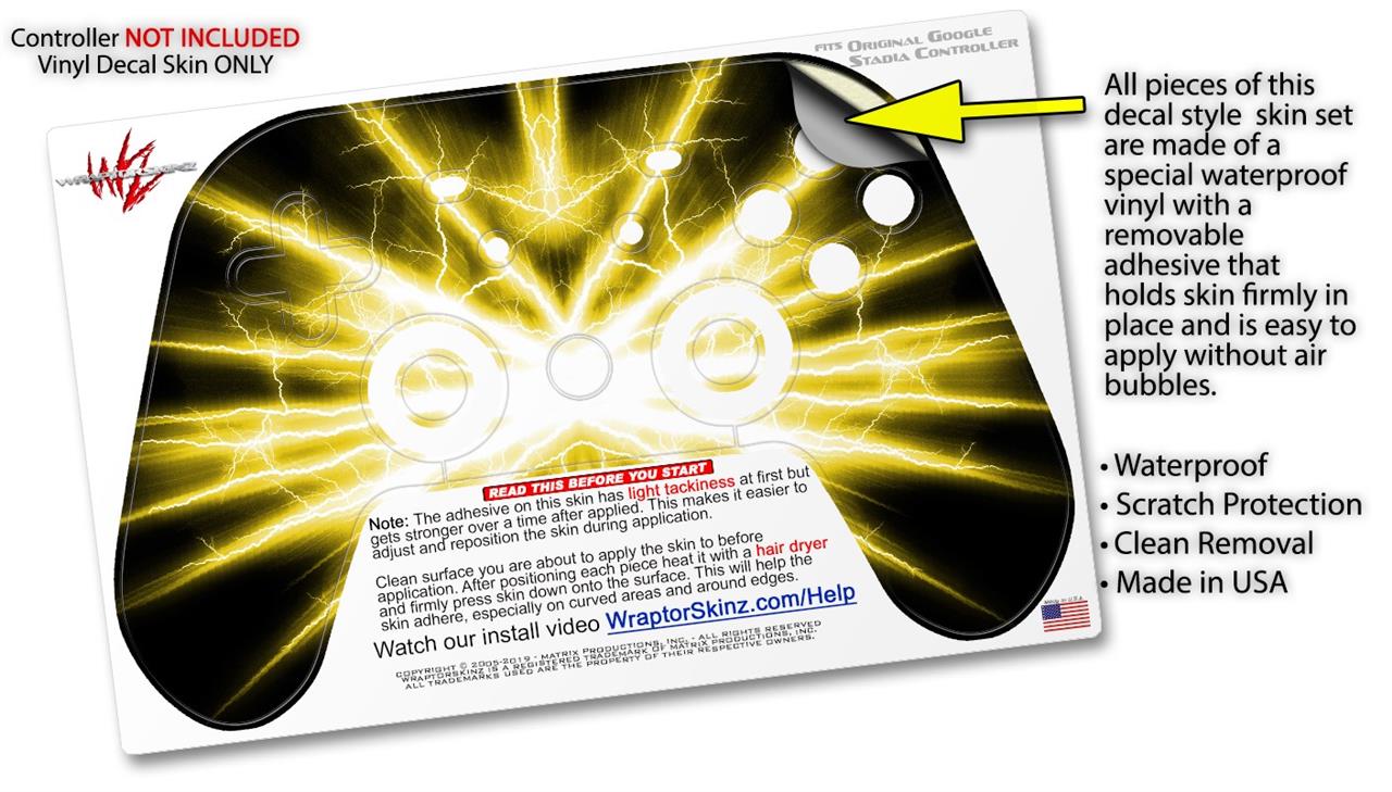 Skin Decal Wrap works with Original Google Stadia Controller Lightning Yellow Skin Only CONTROLLER NOT INCLUDED