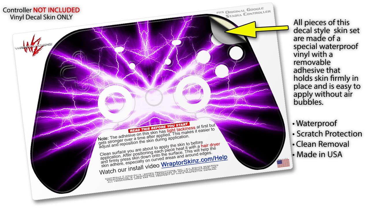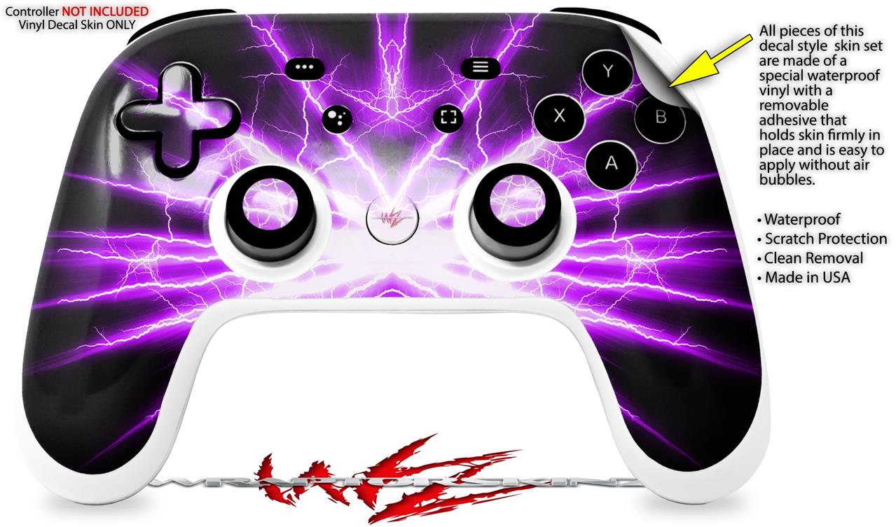 Skin Decal Wrap works with Original Google Stadia Controller Lightning Purple Skin Only CONTROLLER NOT INCLUDED