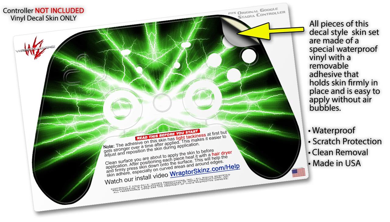 Skin Decal Wrap works with Original Google Stadia Controller Lightning Green Skin Only CONTROLLER NOT INCLUDED