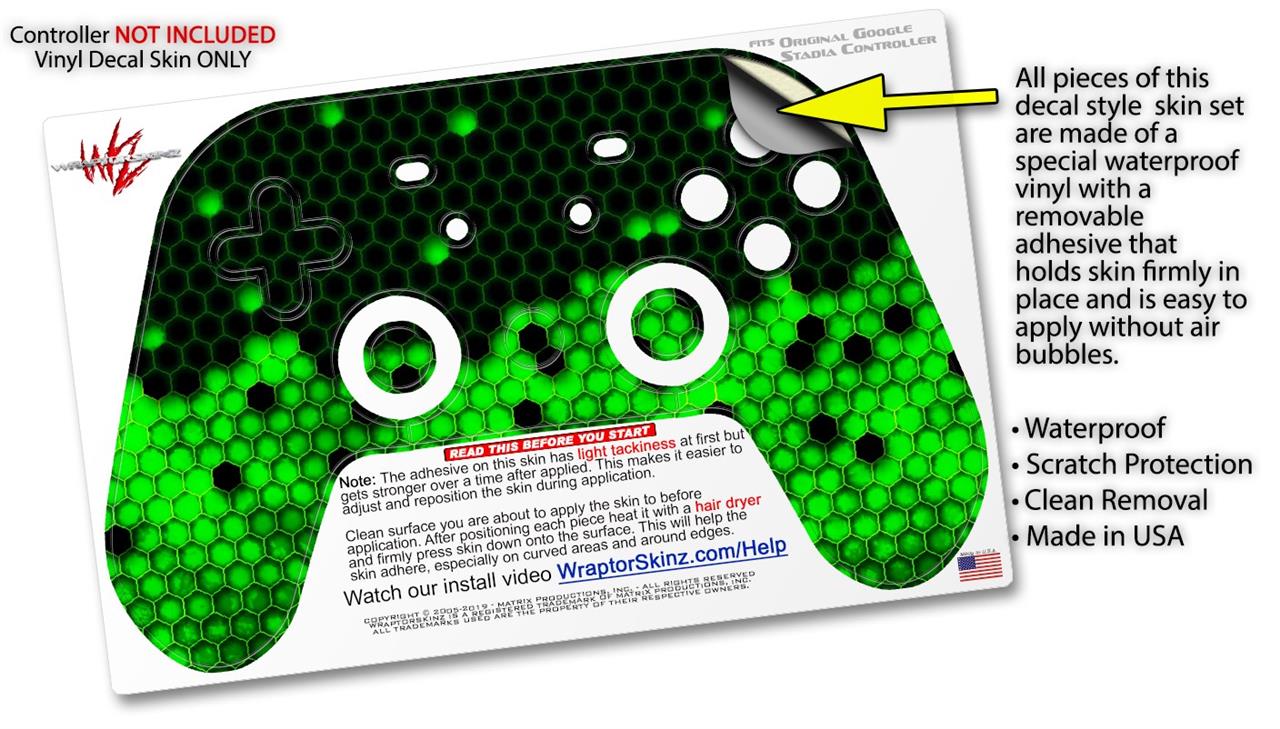 Skin Decal Wrap works with Original Google Stadia Controller HEX Green Skin Only CONTROLLER NOT INCLUDED