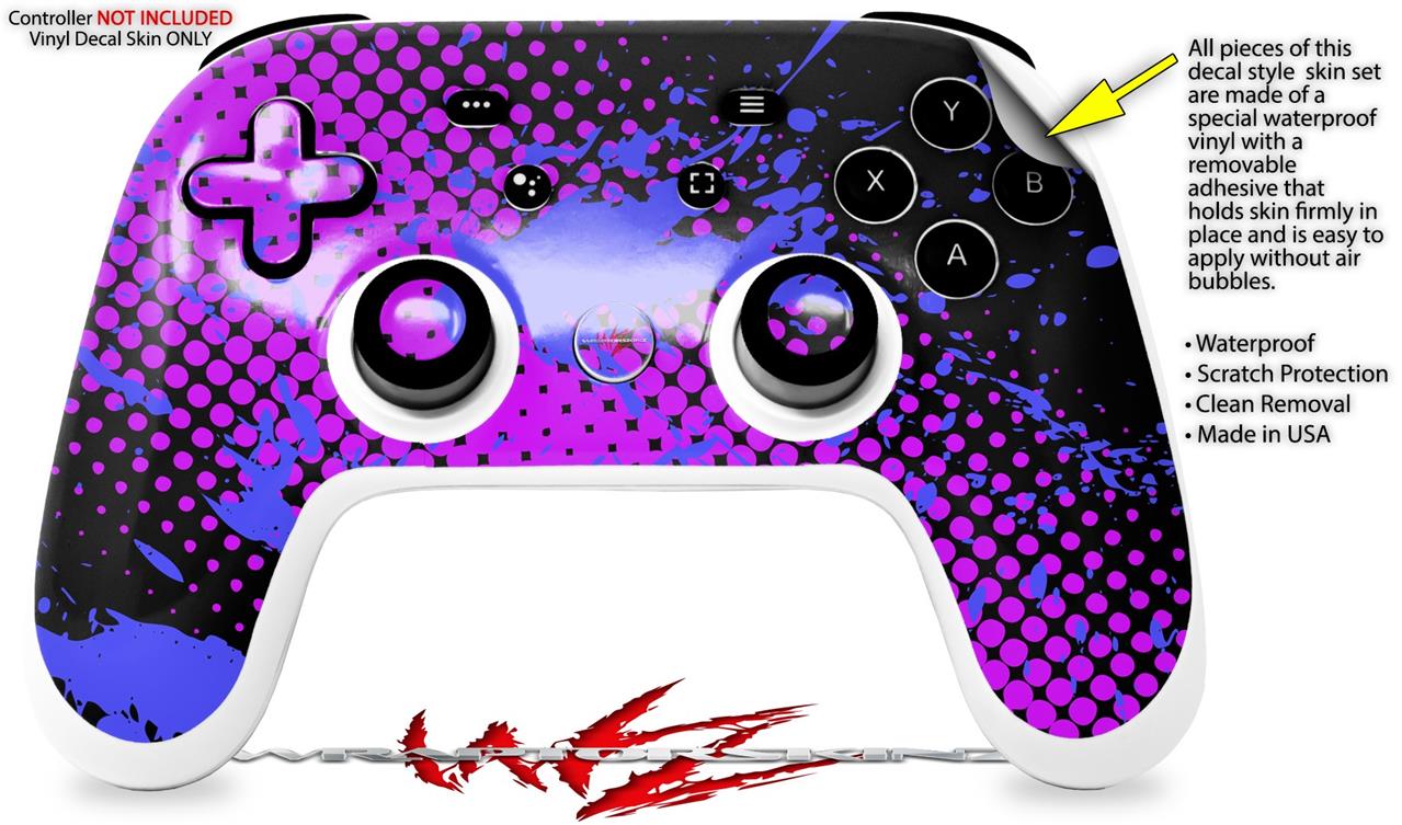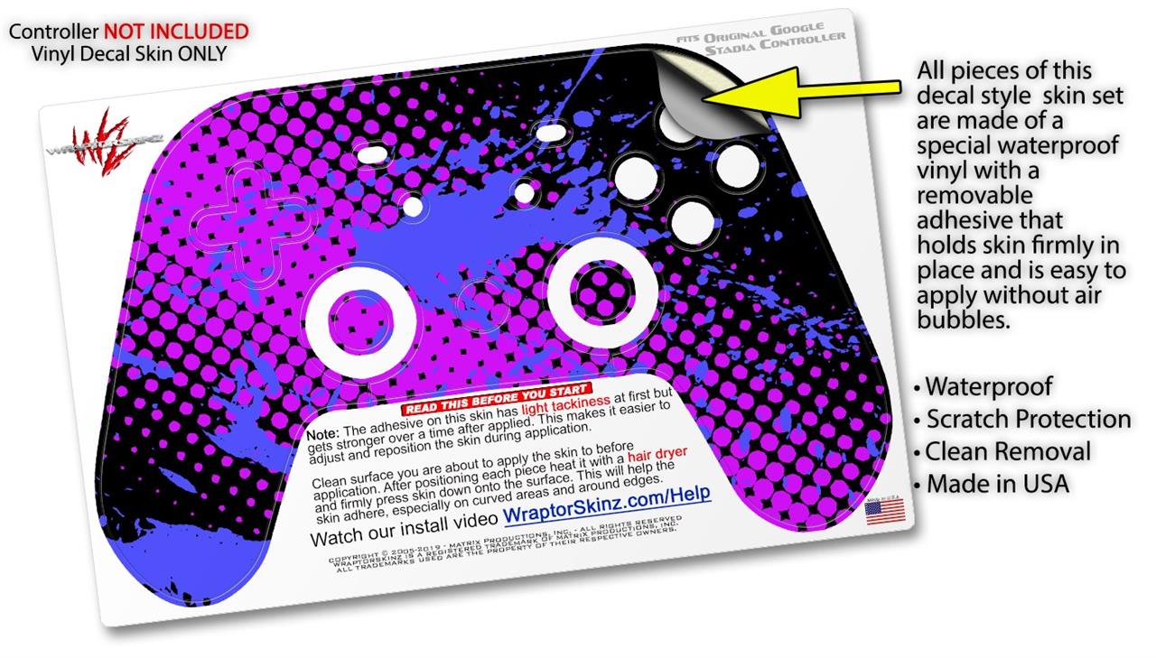 Skin Decal Wrap works with Original Google Stadia Controller Halftone Splatter Blue Hot Pink Skin Only CONTROLLER NOT INCLUDED