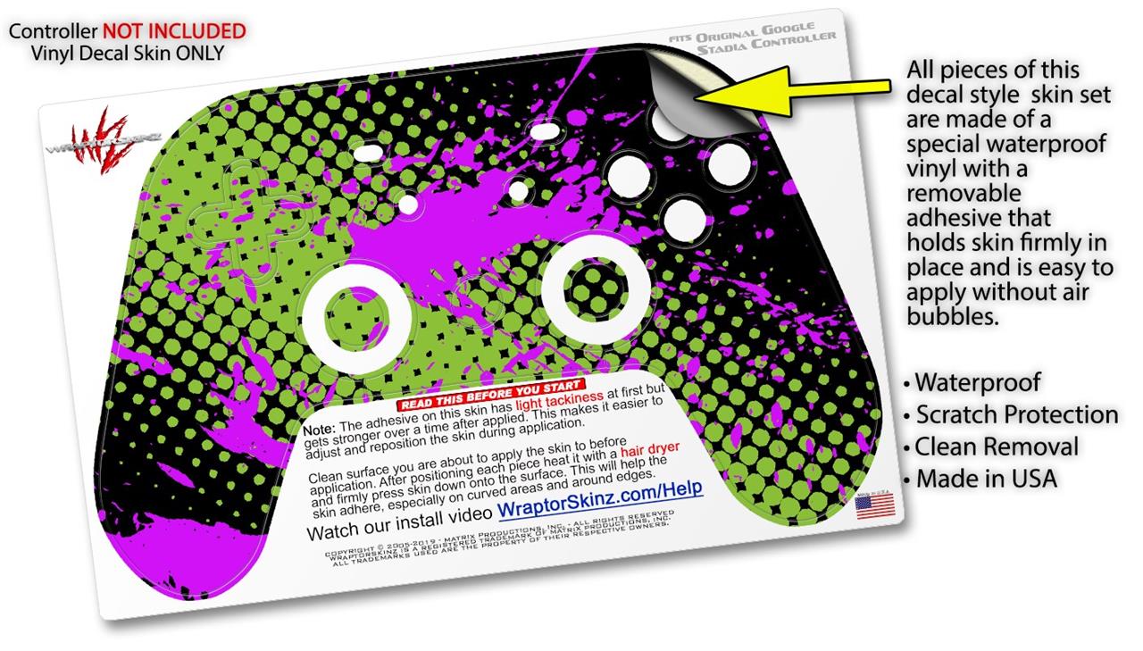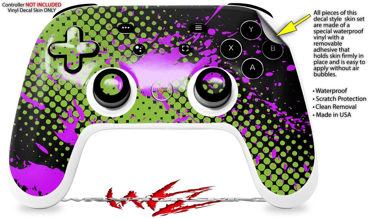 Skin Decal Wrap works with Original Google Stadia Controller Halftone Splatter Hot Pink Green Skin Only CONTROLLER NOT INCLUDED