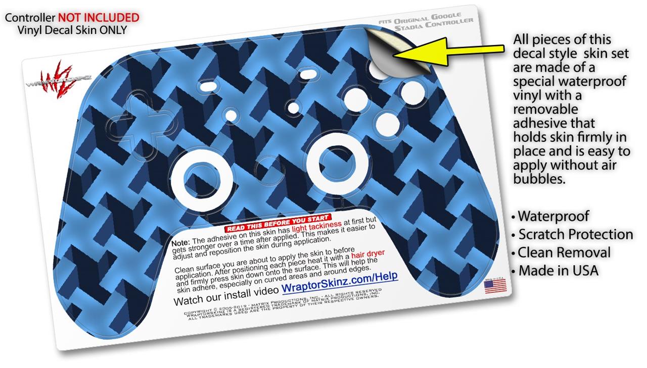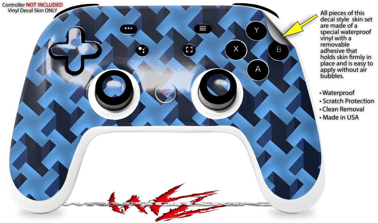 Skin Decal Wrap works with Original Google Stadia Controller Retro Houndstooth Blue Skin Only CONTROLLER NOT INCLUDED