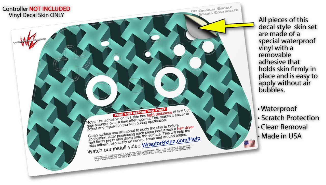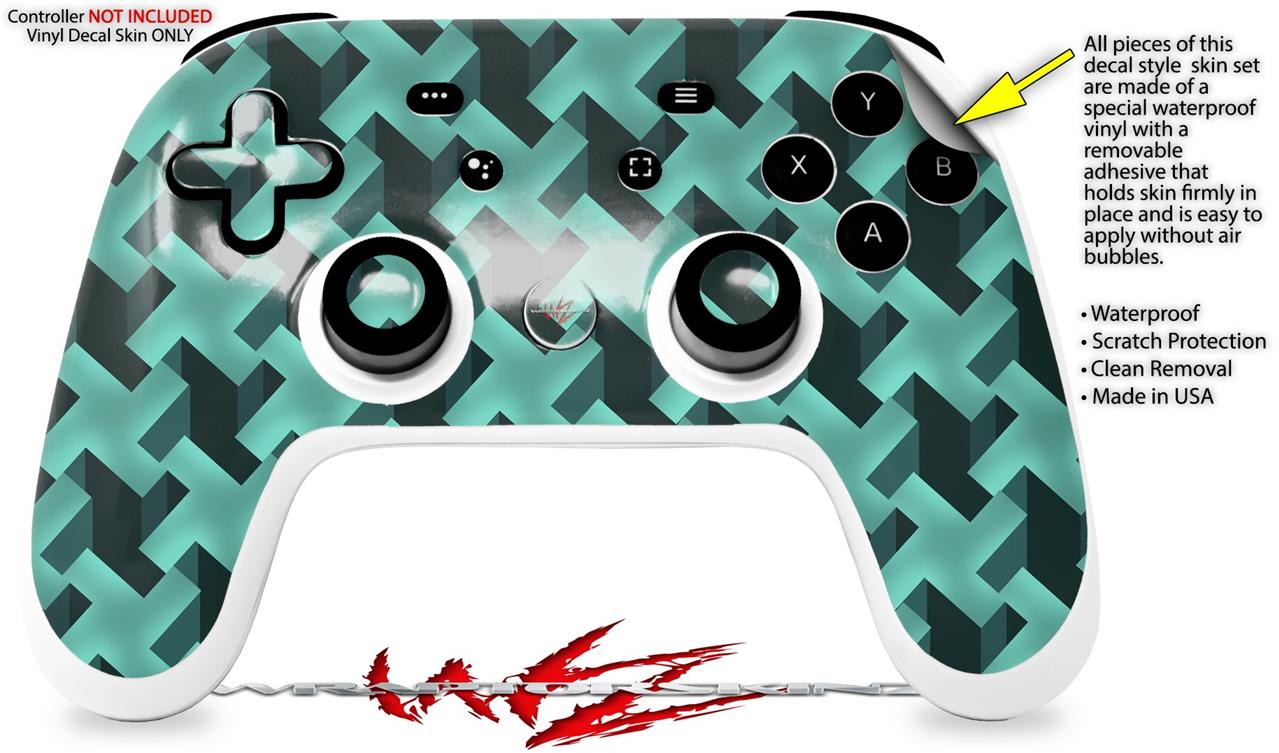 Skin Decal Wrap works with Original Google Stadia Controller Retro Houndstooth Seafoam Green Skin Only CONTROLLER NOT INCLUDED