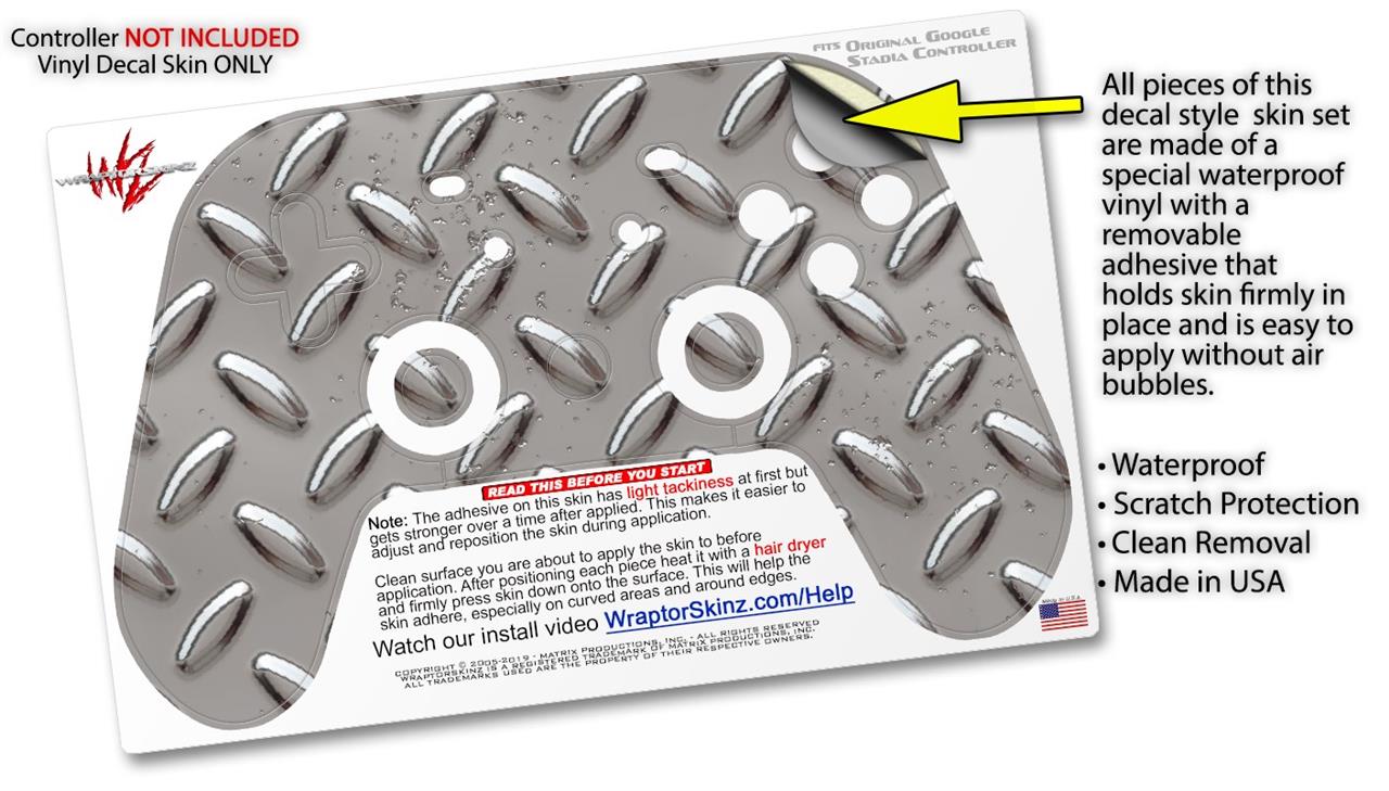 Skin Decal Wrap works with Original Google Stadia Controller Diamond Plate Metal 02 Skin Only CONTROLLER NOT INCLUDED