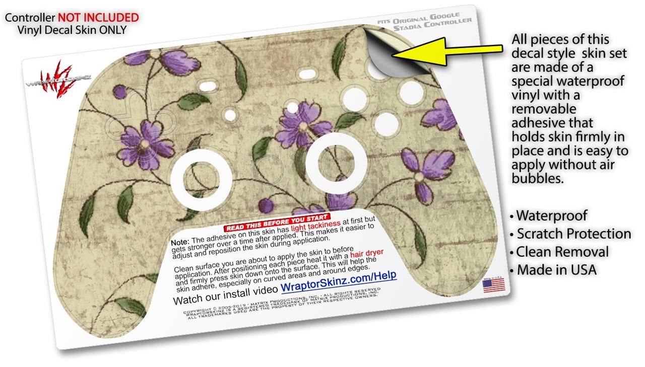 Skin Decal Wrap works with Original Google Stadia Controller Flowers and Berries Purple Skin Only CONTROLLER NOT INCLUDED