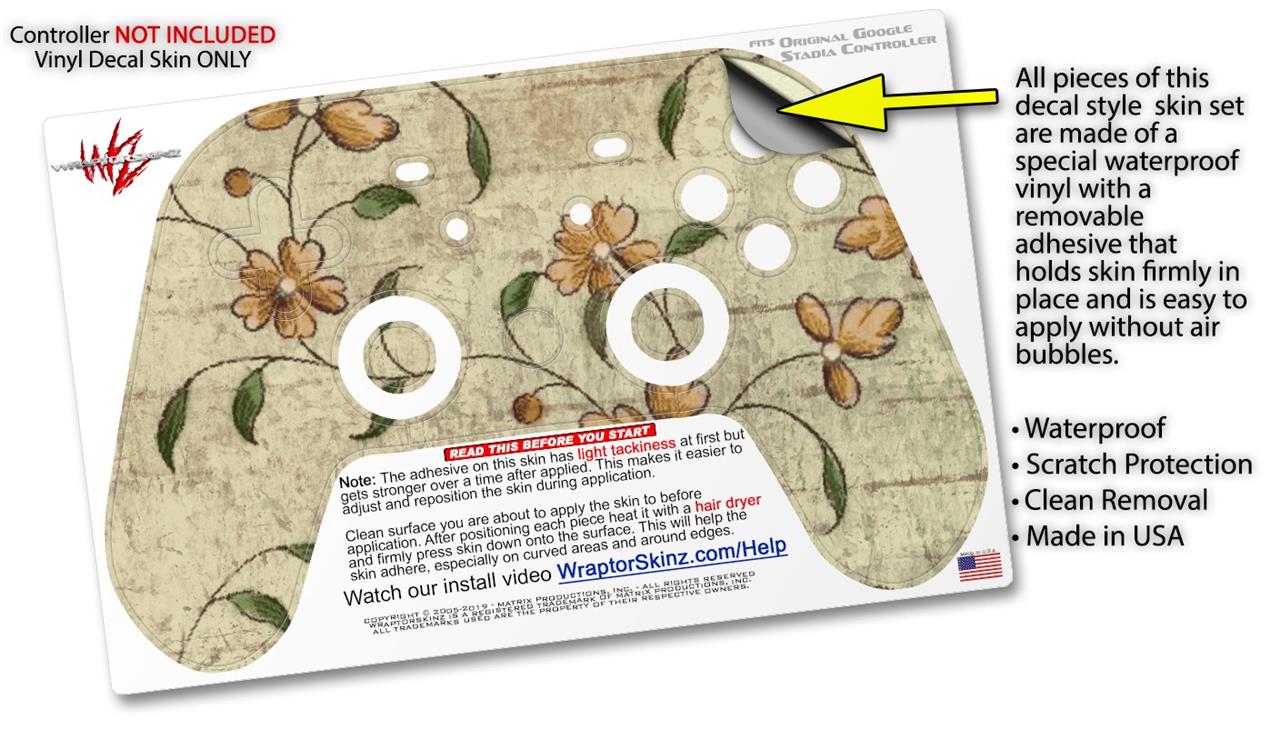 This product is in no way affiliated with or endorsed by Google. WraptorSkinz® skin wraps work with the Original Google Stadia version 1 Controller. Printed using superb photo quality designs and vibrant colors printed with special fade resistant inks that last even in direct sun for years. WraptorSkinz are a composite of two layers of commercial grade materials. The bottom layer is a soft, flexible vinyl with a special removable adhesive that is easily positioned, applied without air bubbles. Next, we print the bottom layer with UV protected, fade resistant inks that deliver superb photo quality designs in vibrant colors. Finally, we bond a professional grade laminate over the entire skin adding a glossy protective finish.