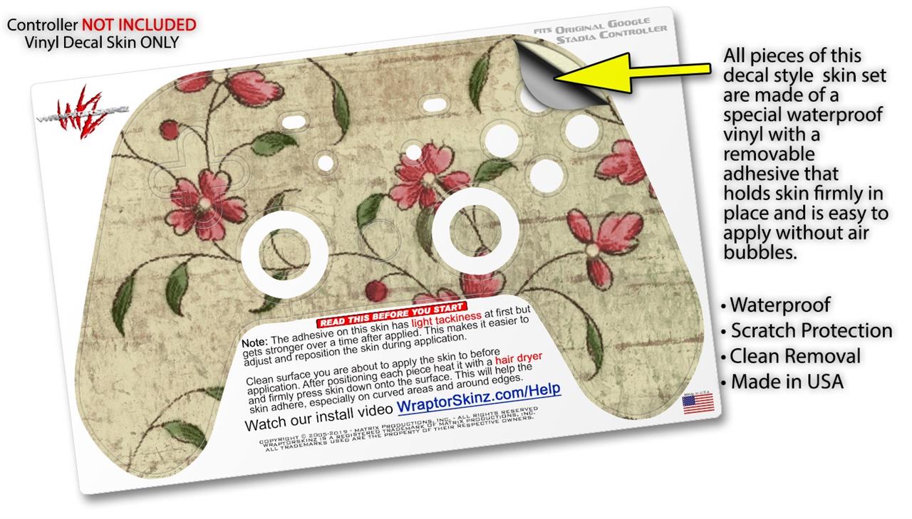 This product is in no way affiliated with or endorsed by Google. WraptorSkinz® skin wraps work with the Original Google Stadia version 1 Controller. Printed using superb photo quality designs and vibrant colors printed with special fade resistant inks that last even in direct sun for years. WraptorSkinz are a composite of two layers of commercial grade materials. The bottom layer is a soft, flexible vinyl with a special removable adhesive that is easily positioned, applied without air bubbles. Next, we print the bottom layer with UV protected, fade resistant inks that deliver superb photo quality designs in vibrant colors. Finally, we bond a professional grade laminate over the entire skin adding a glossy protective finish.