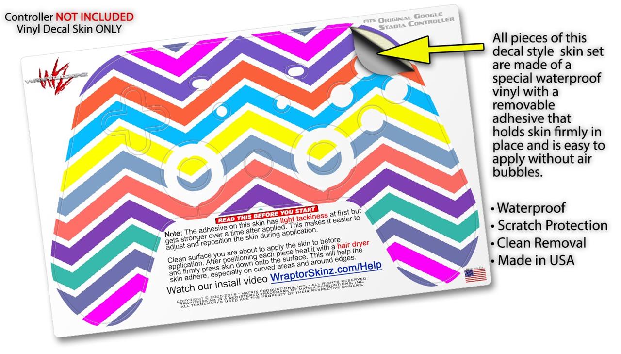 Skin Decal Wrap works with Original Google Stadia Controller Zig Zag Colors 04 Skin Only CONTROLLER NOT INCLUDED