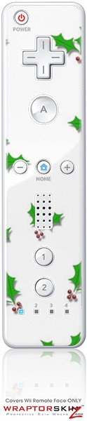Wii Remote Controller Skin - Christmas Holly Leaves on White