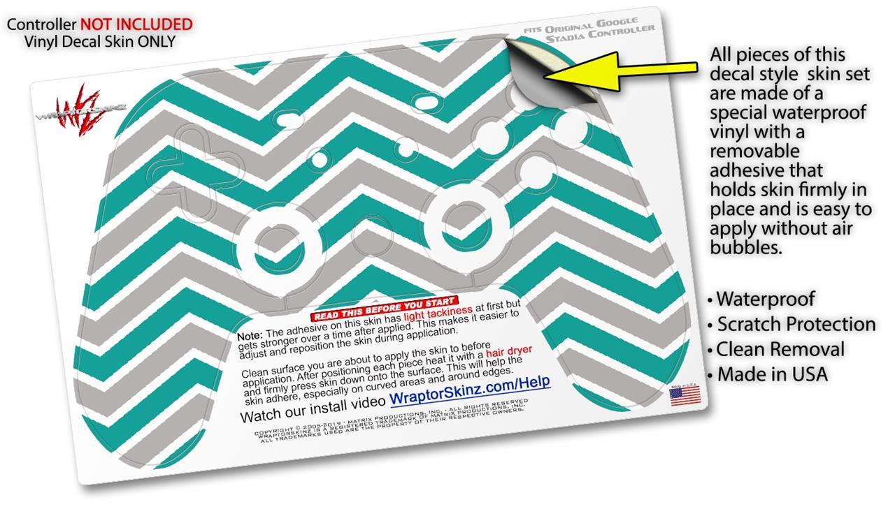 Skin Decal Wrap works with Original Google Stadia Controller Zig Zag Teal and Gray Skin Only CONTROLLER NOT INCLUDED
