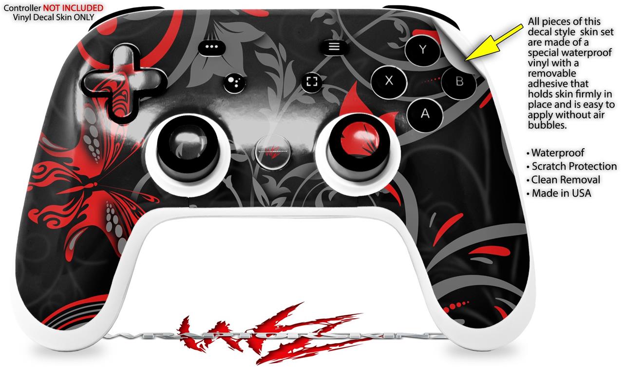 Skin Decal Wrap works with Original Google Stadia Controller Twisted Garden Gray and Red Skin Only CONTROLLER NOT INCLUDED