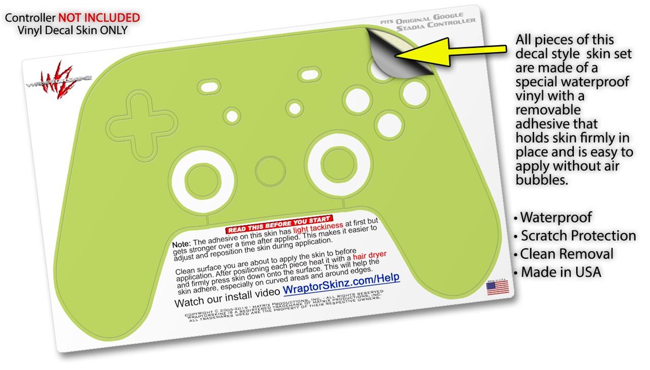 This product is in no way affiliated with or endorsed by Google. WraptorSkinz® skin wraps work with the Original Google Stadia version 1 Controller. Printed using superb photo quality designs and vibrant colors printed with special fade resistant inks that last even in direct sun for years. WraptorSkinz are a composite of two layers of commercial grade materials. The bottom layer is a soft, flexible vinyl with a special removable adhesive that is easily positioned, applied without air bubbles. Next, we print the bottom layer with UV protected, fade resistant inks that deliver superb photo quality designs in vibrant colors. Finally, we bond a professional grade laminate over the entire skin adding a glossy protective finish.