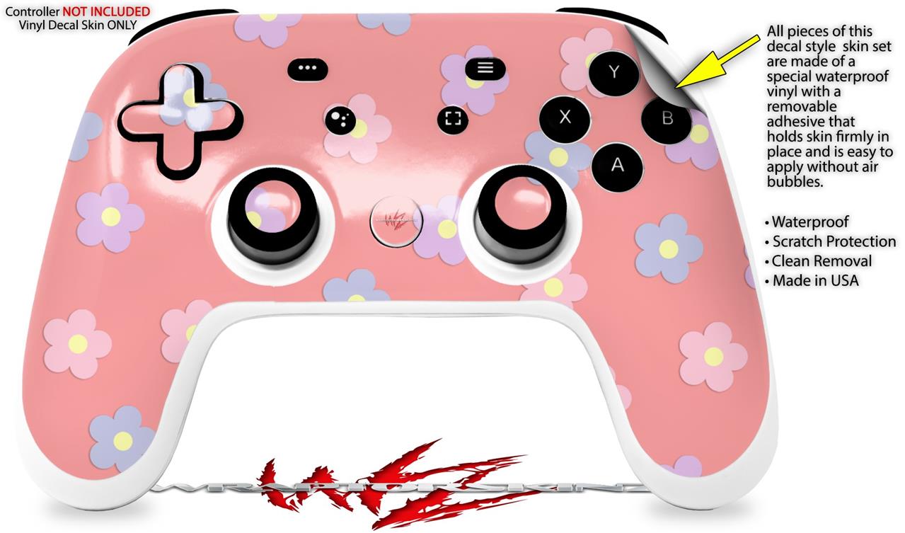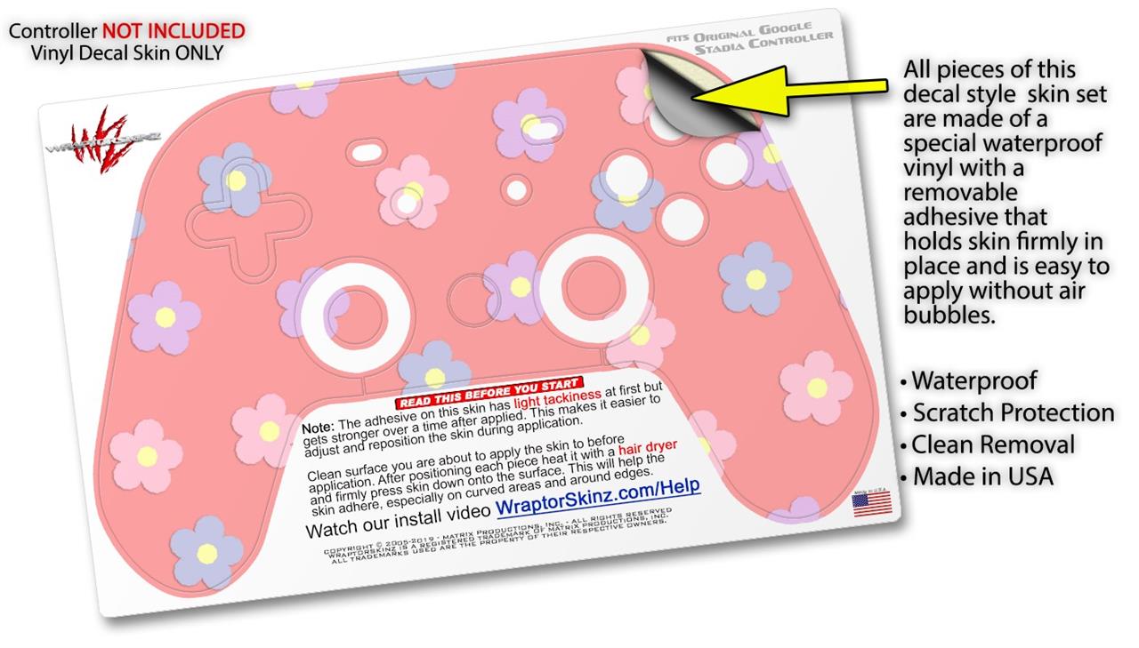 Skin Decal Wrap works with Original Google Stadia Controller Pastel Flowers on Pink Skin Only CONTROLLER NOT INCLUDED