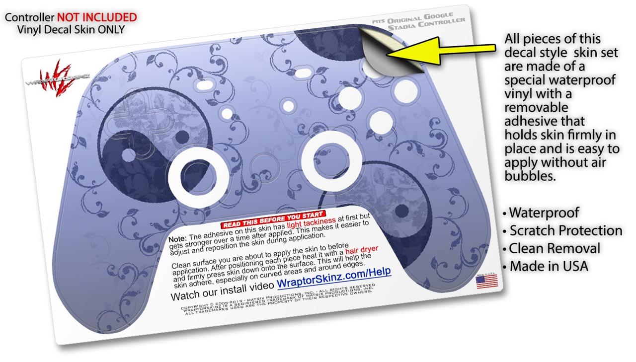 Skin Decal Wrap works with Original Google Stadia Controller Feminine Yin Yang Blue Skin Only CONTROLLER NOT INCLUDED
