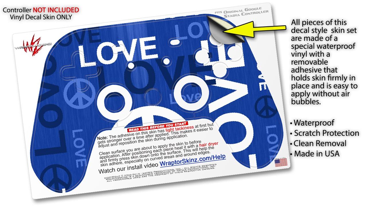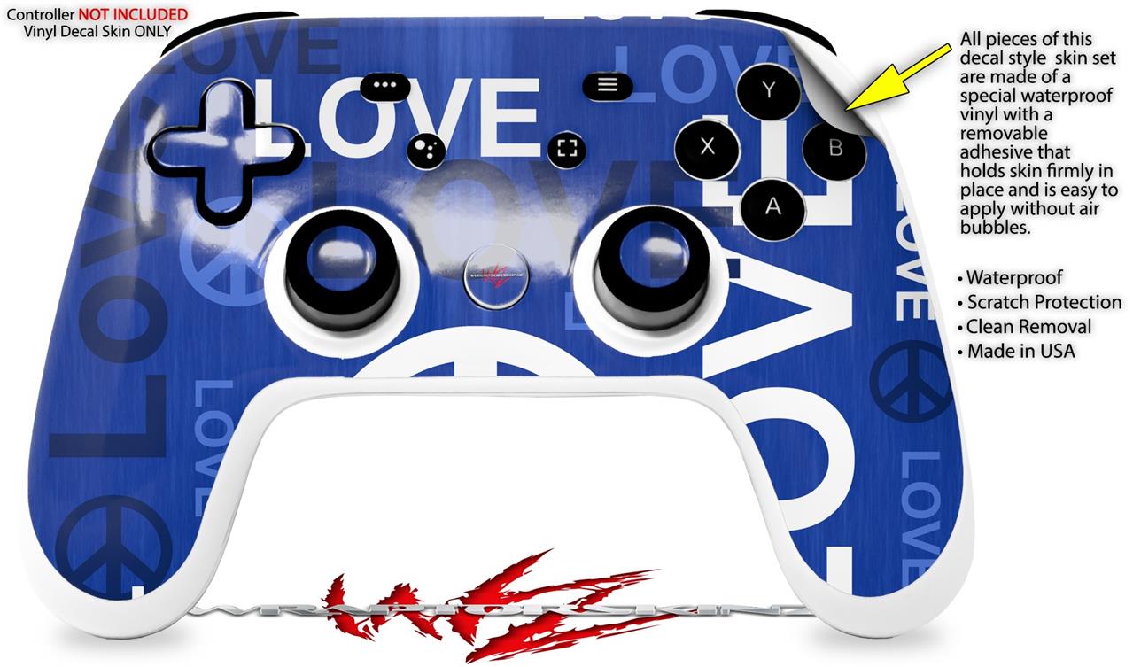 Skin Decal Wrap works with Original Google Stadia Controller Love and Peace Blue Skin Only CONTROLLER NOT INCLUDED