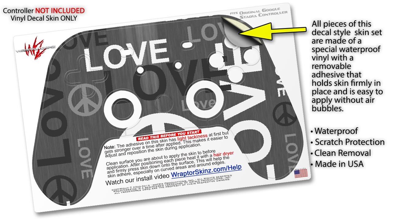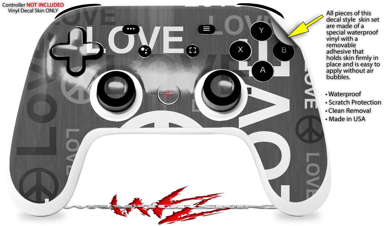 Skin Decal Wrap works with Original Google Stadia Controller Love and Peace Gray Skin Only CONTROLLER NOT INCLUDED