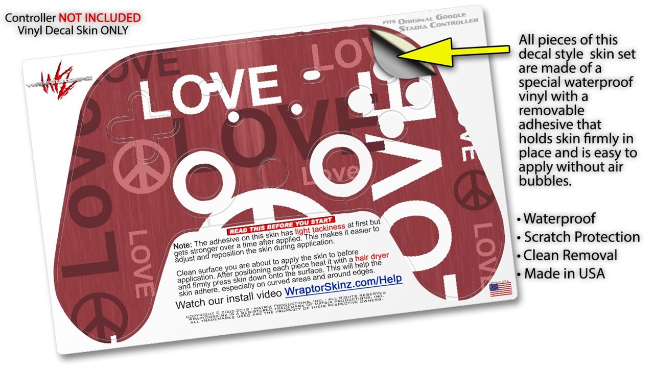 Skin Decal Wrap works with Original Google Stadia Controller Love and Peace Pink Skin Only CONTROLLER NOT INCLUDED