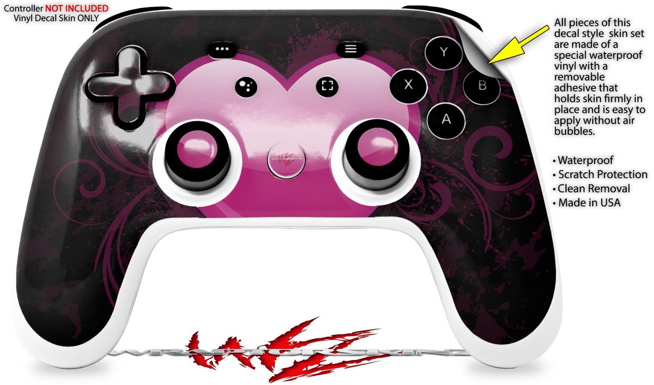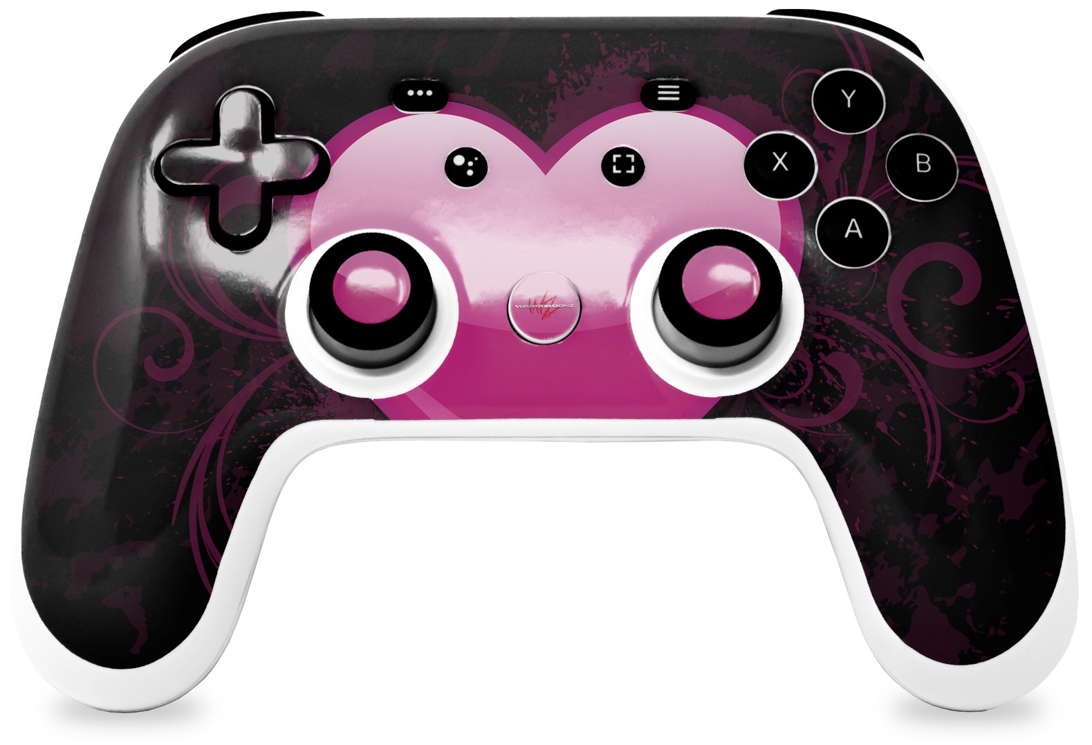 Skin Decal Wrap works with Original Google Stadia Controller Glass Heart Grunge Hot Pink Skin Only CONTROLLER NOT INCLUDED