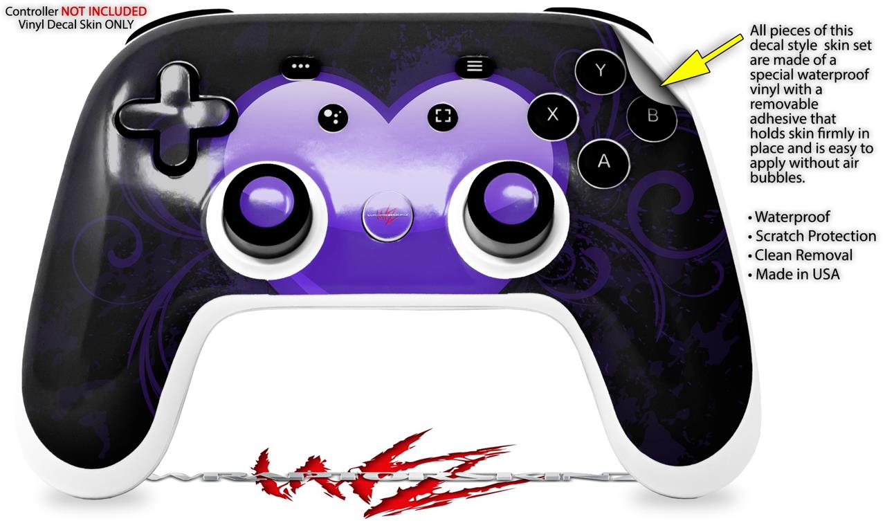 Skin Decal Wrap works with Original Google Stadia Controller Glass Heart Grunge Purple Skin Only CONTROLLER NOT INCLUDED