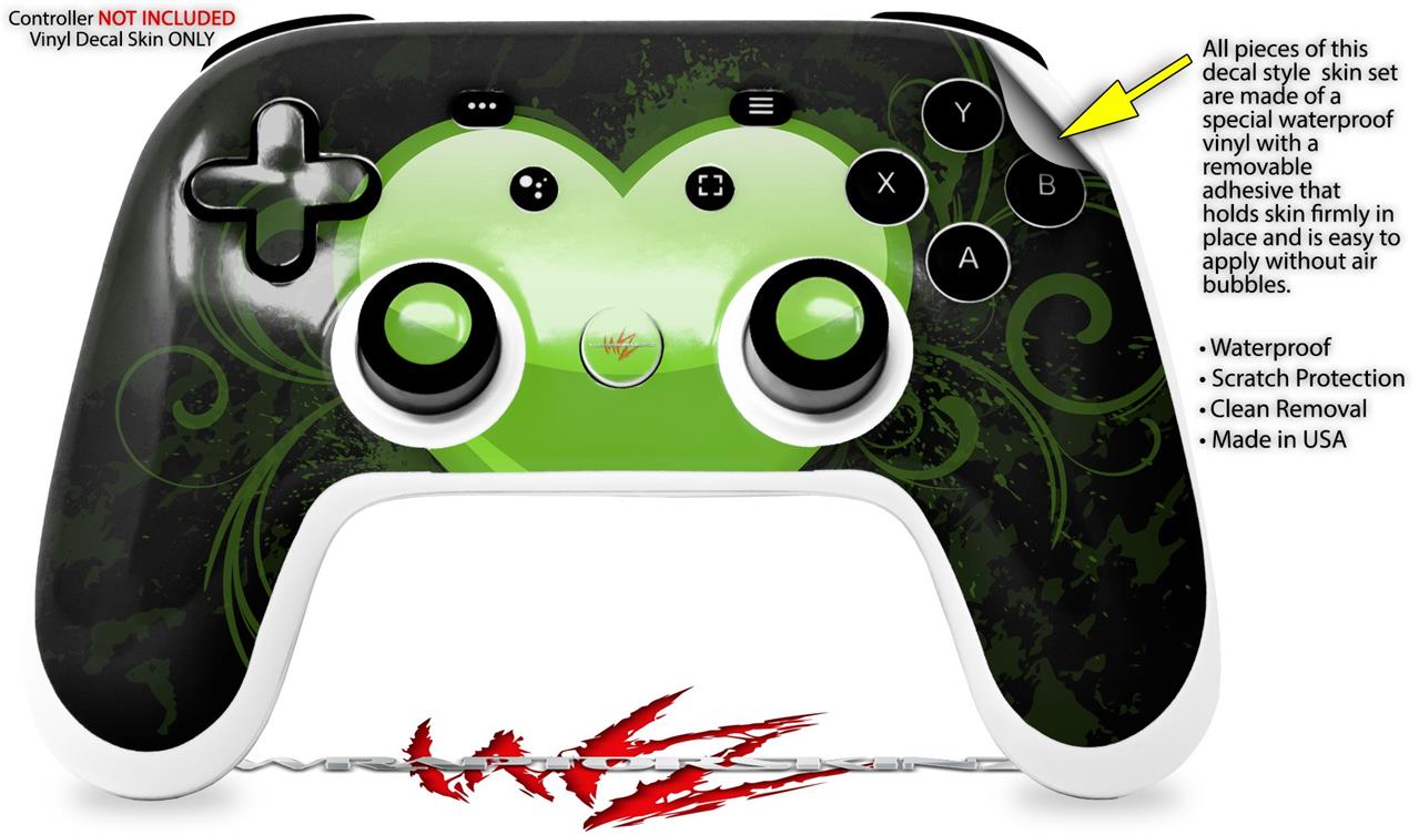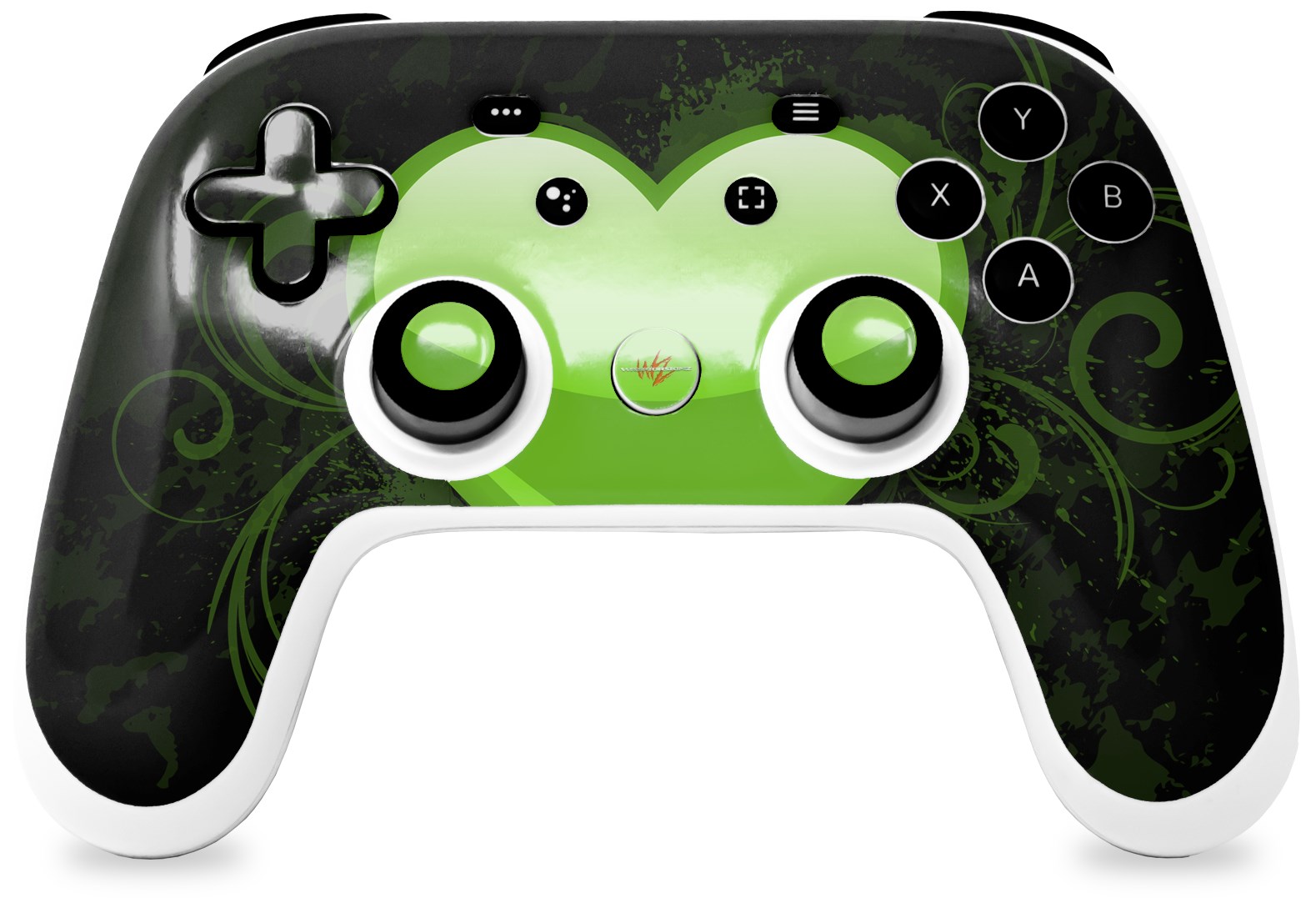 Skin Decal Wrap works with Original Google Stadia Controller Glass Heart Grunge Green Skin Only CONTROLLER NOT INCLUDED