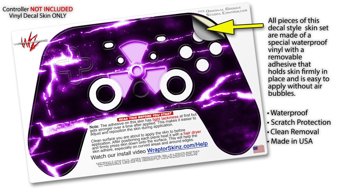 Skin Decal Wrap works with Original Google Stadia Controller Radioactive Purple Skin Only CONTROLLER NOT INCLUDED