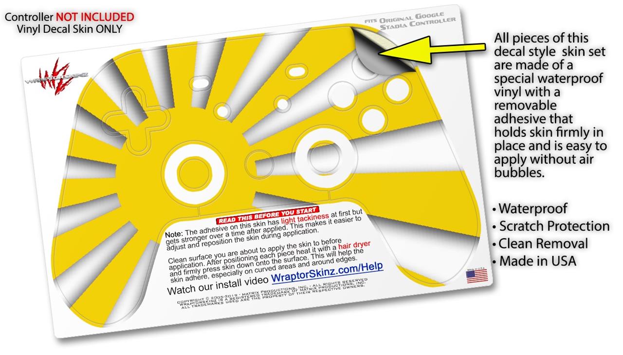 Skin Decal Wrap works with Original Google Stadia Controller Rising Sun Japanese Flag Yellow Skin Only CONTROLLER NOT INCLUDED