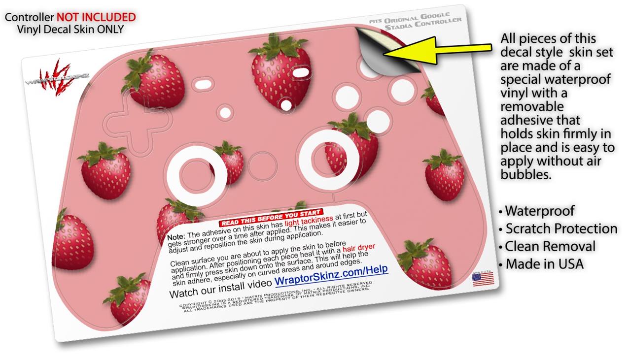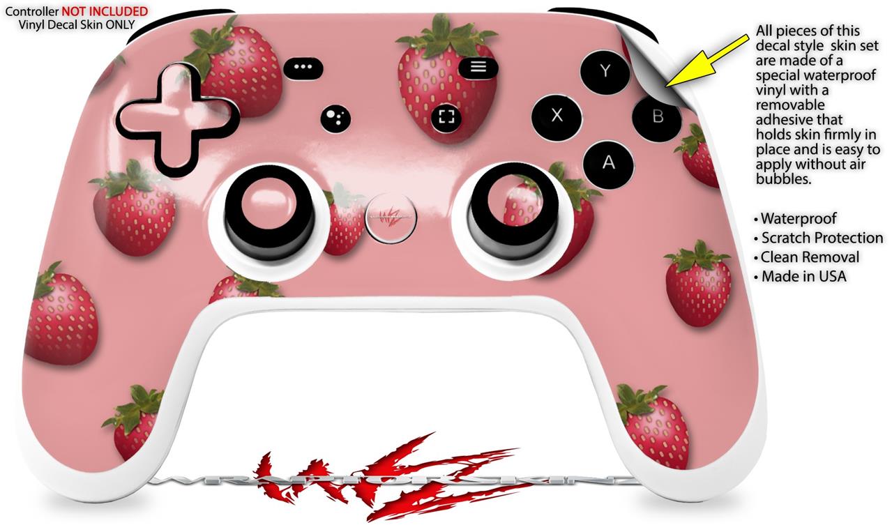 Skin Decal Wrap works with Original Google Stadia Controller Strawberries on Pink Skin Only CONTROLLER NOT INCLUDED