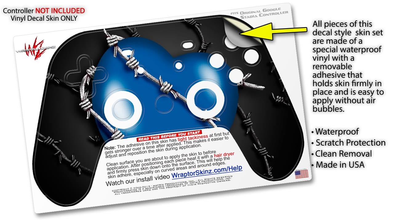Skin Decal Wrap works with Original Google Stadia Controller Barbwire Heart Blue Skin Only CONTROLLER NOT INCLUDED