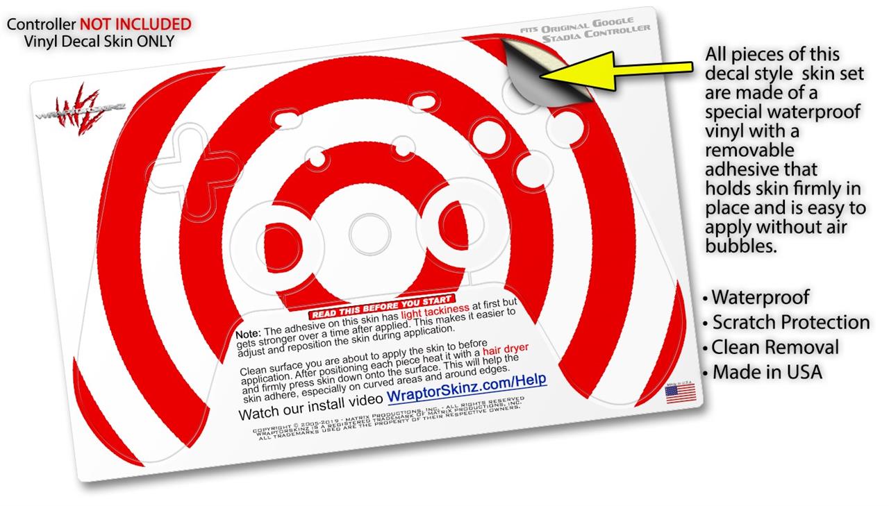 Skin Decal Wrap works with Original Google Stadia Controller Bullseye Red and White Skin Only CONTROLLER NOT INCLUDED
