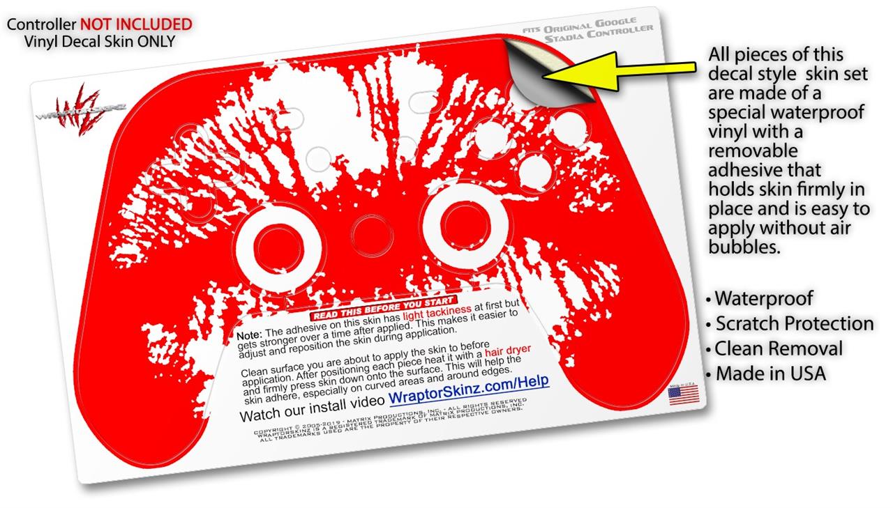 This product is in no way affiliated with or endorsed by Google. WraptorSkinz® skin wraps work with the Original Google Stadia version 1 Controller. Printed using superb photo quality designs and vibrant colors printed with special fade resistant inks that last even in direct sun for years. WraptorSkinz are a composite of two layers of commercial grade materials. The bottom layer is a soft, flexible vinyl with a special removable adhesive that is easily positioned, applied without air bubbles. Next, we print the bottom layer with UV protected, fade resistant inks that deliver superb photo quality designs in vibrant colors. Finally, we bond a professional grade laminate over the entire skin adding a glossy protective finish.