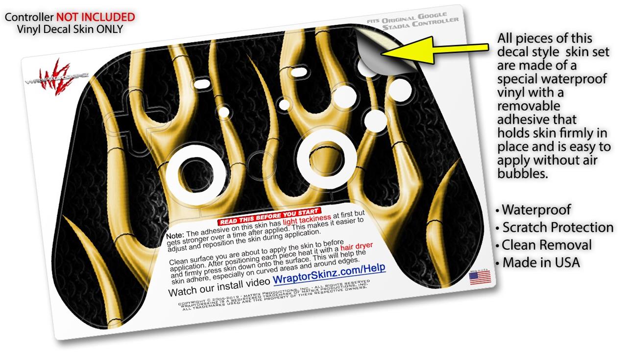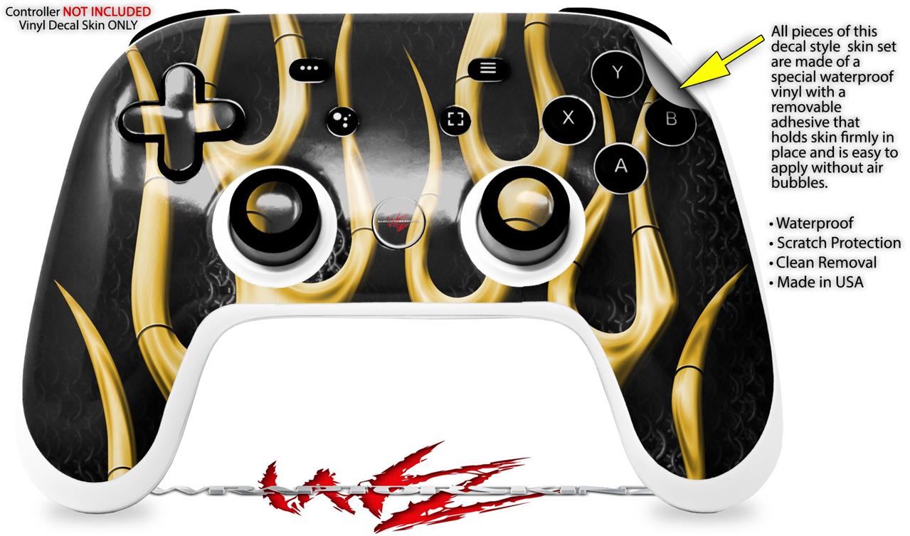 Skin Decal Wrap works with Original Google Stadia Controller Metal Flames Yellow Skin Only CONTROLLER NOT INCLUDED