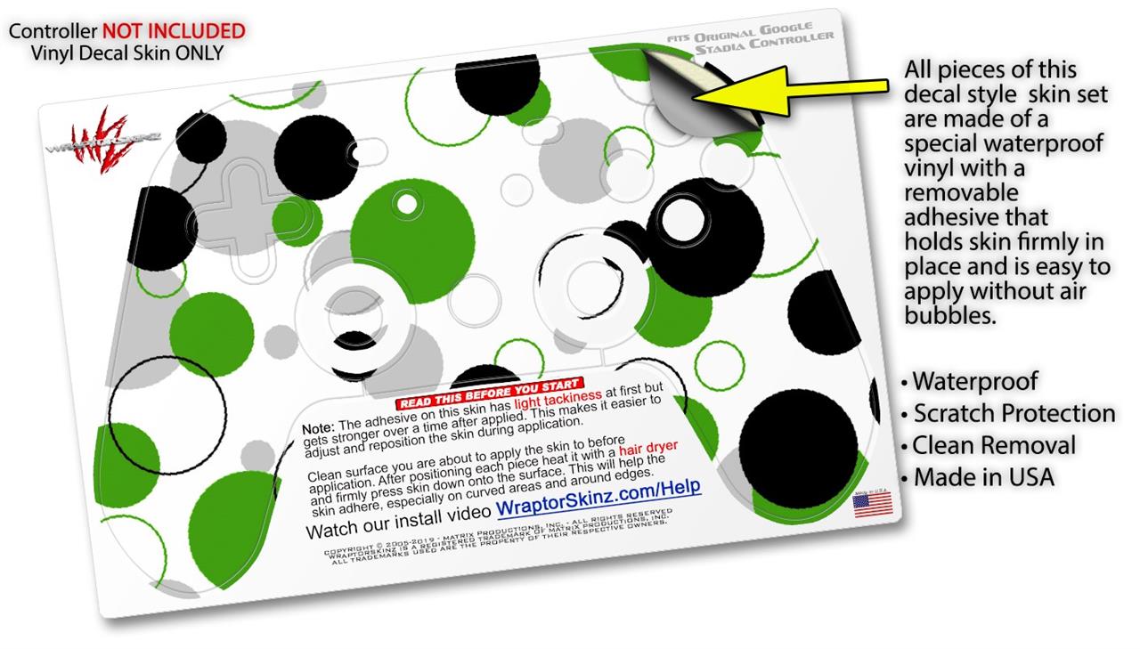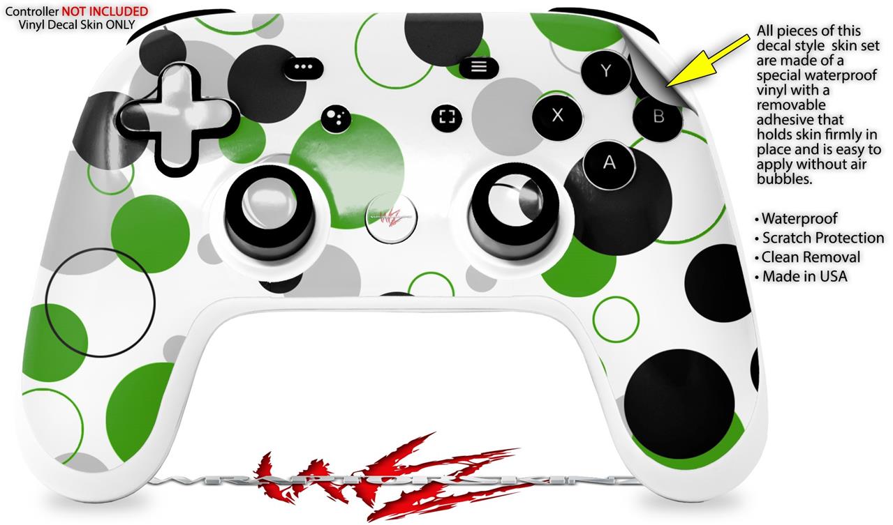 Skin Decal Wrap works with Original Google Stadia Controller Lots of Dots Green on White Skin Only CONTROLLER NOT INCLUDED
