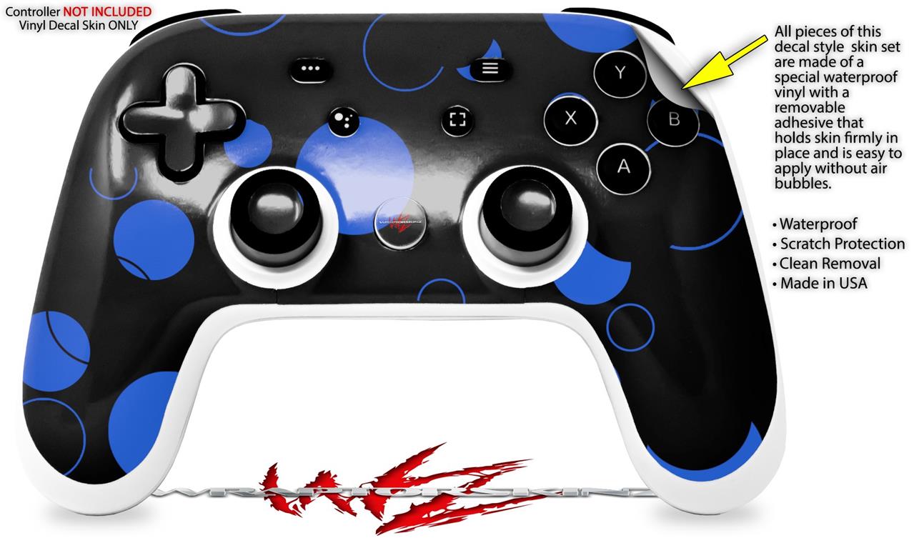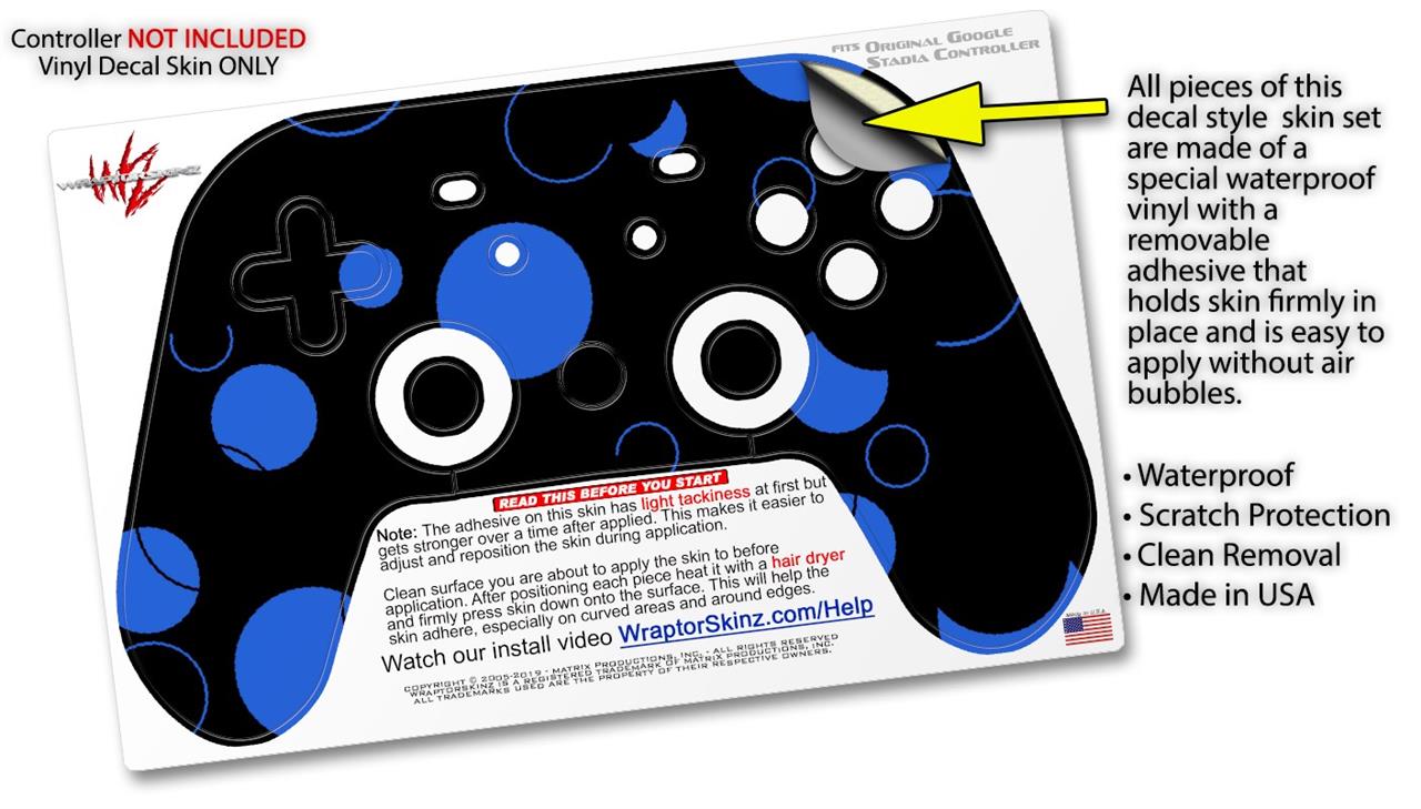 Skin Decal Wrap works with Original Google Stadia Controller Lots of Dots Blue on Black Skin Only CONTROLLER NOT INCLUDED