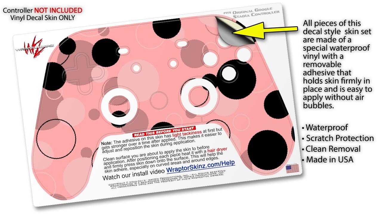 Skin Decal Wrap works with Original Google Stadia Controller Lots of Dots Pink on Pink Skin Only CONTROLLER NOT INCLUDED