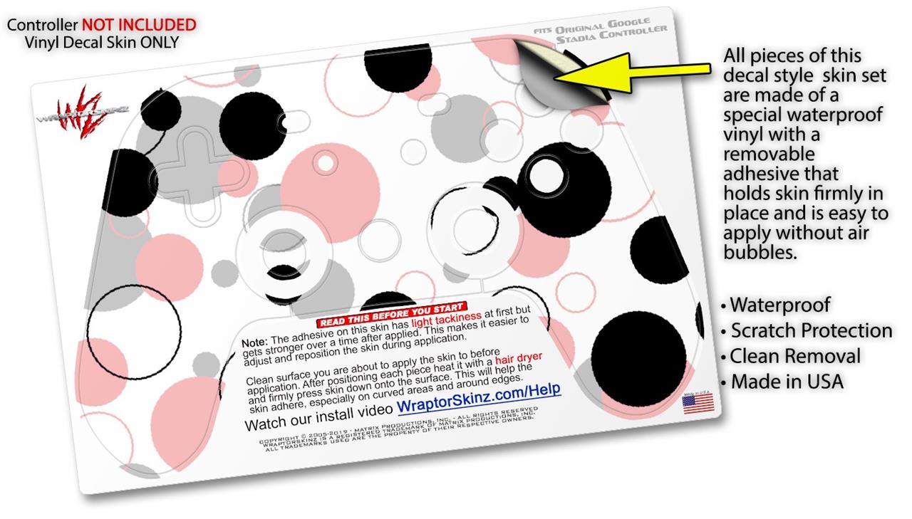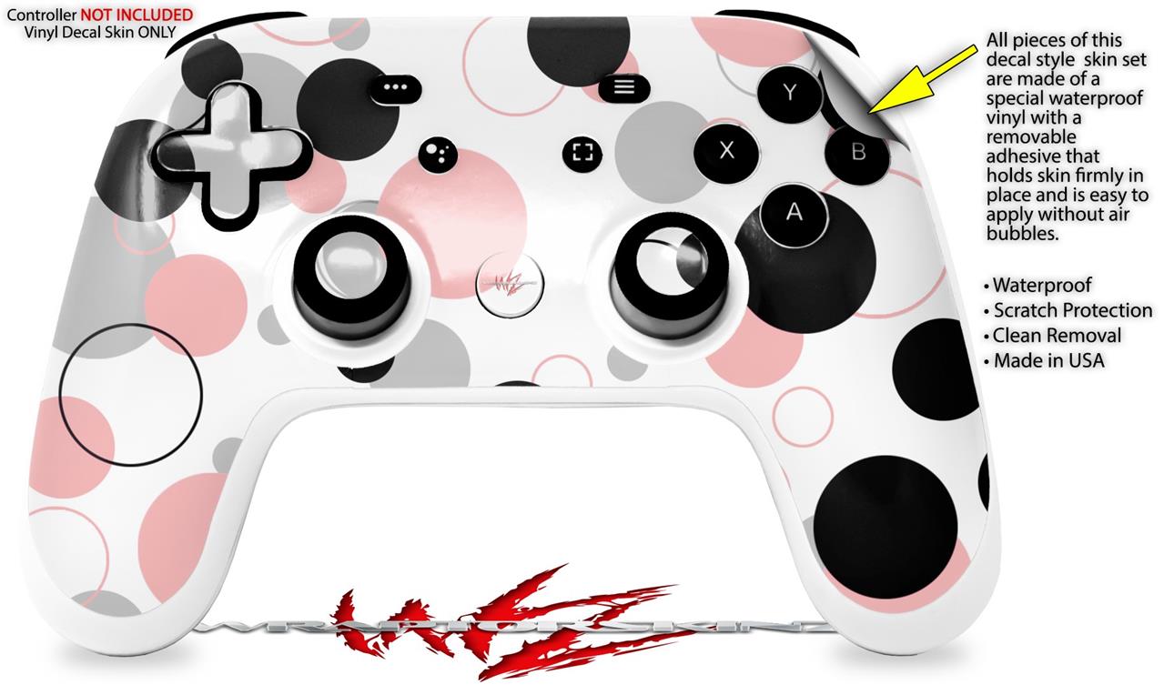 Skin Decal Wrap works with Original Google Stadia Controller Lots of Dots Pink on White Skin Only CONTROLLER NOT INCLUDED