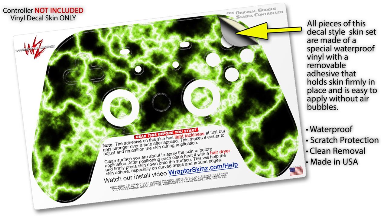 Skin Decal Wrap works with Original Google Stadia Controller Electrify Green Skin Only CONTROLLER NOT INCLUDED