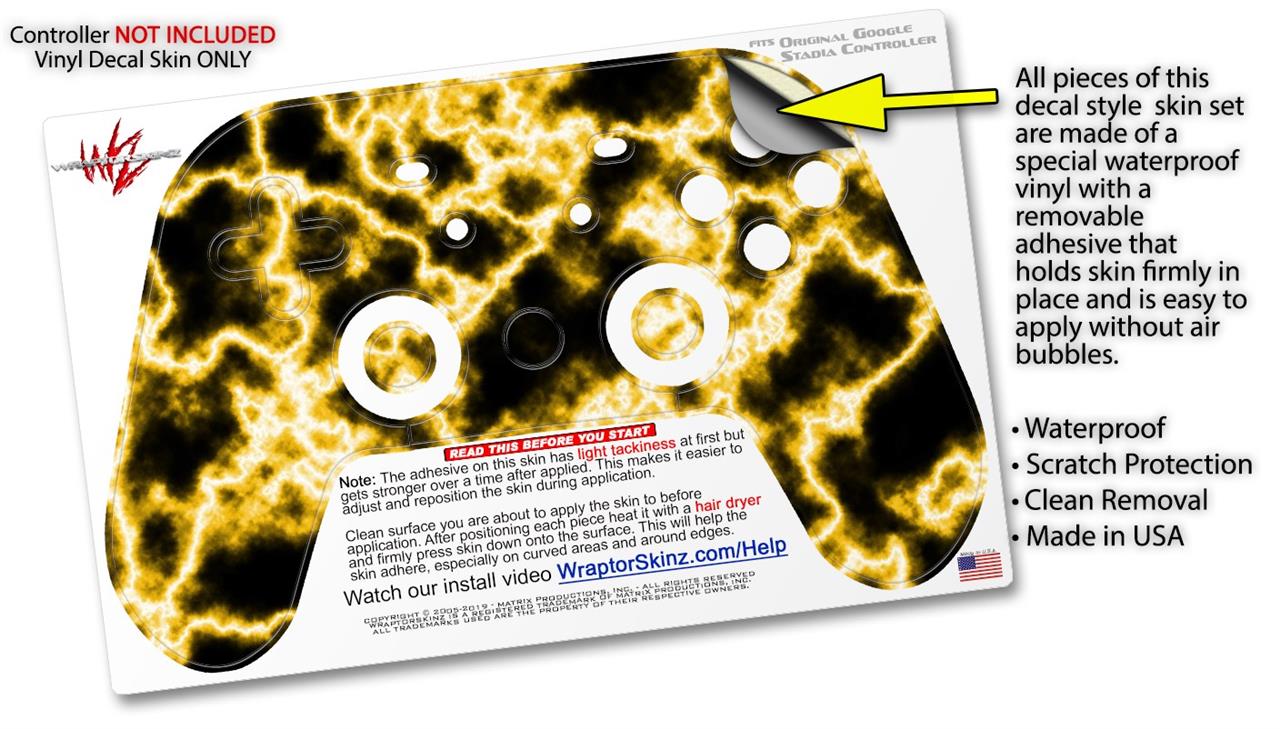 Skin Decal Wrap works with Original Google Stadia Controller Electrify Yellow Skin Only CONTROLLER NOT INCLUDED